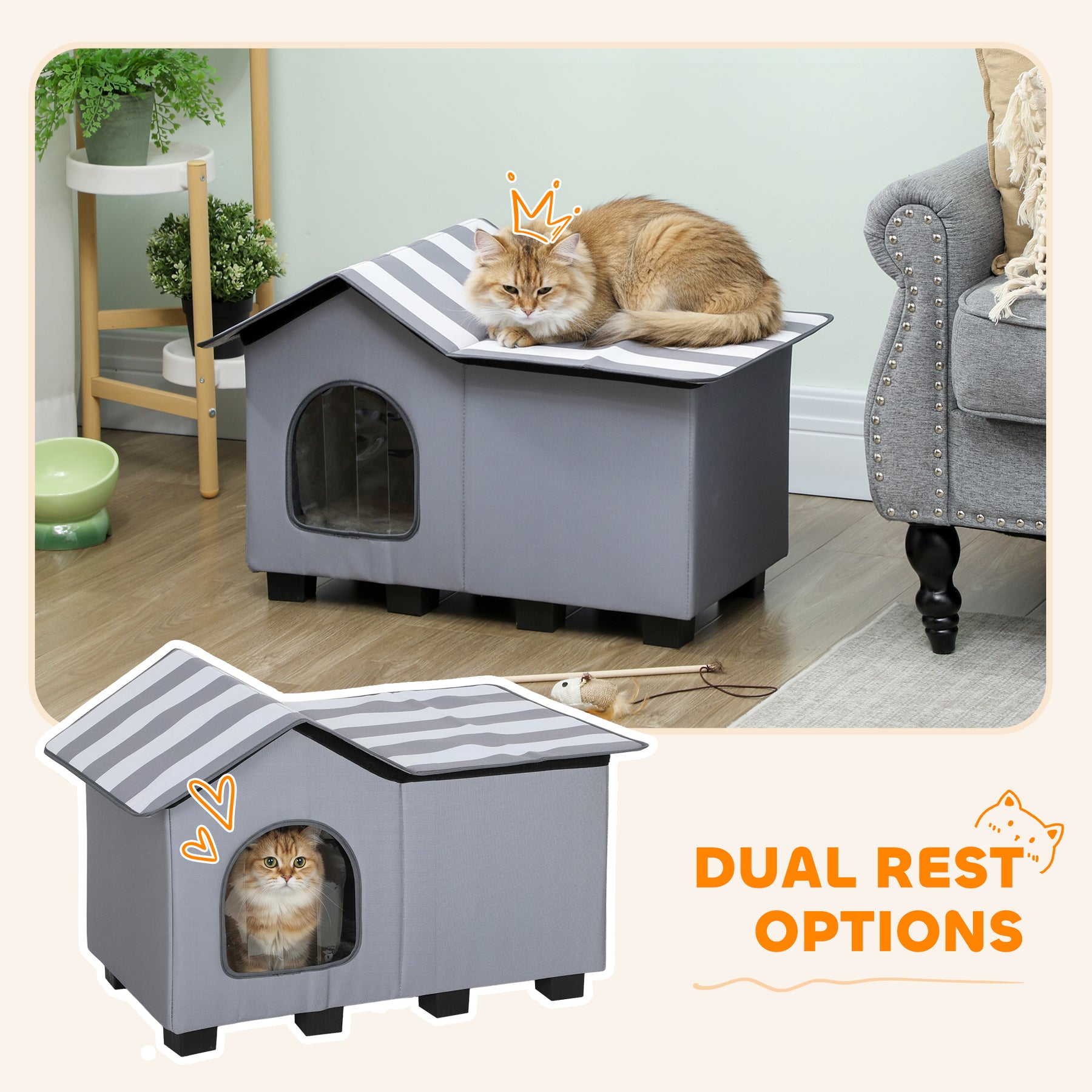 PawHut Outdoor Cat House, Weatherproof Feral Cat Cave with Elevated Base and Cushion for Winter, Grey