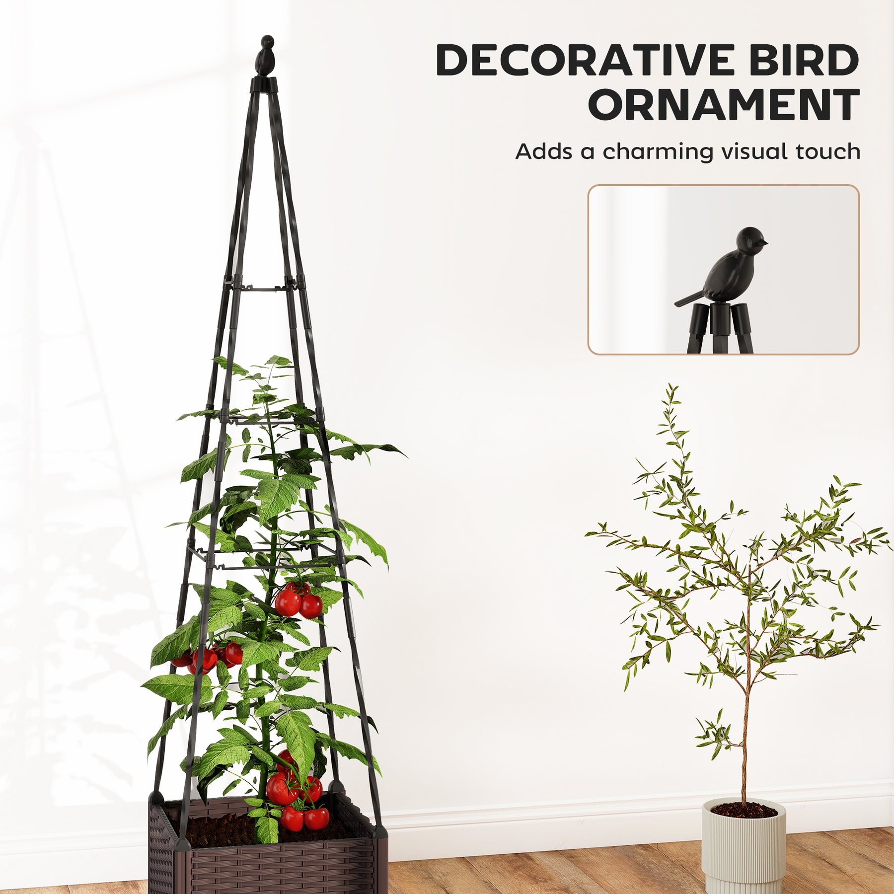 Create a thriving vertical garden with this raised planter box and trellis. The 24.6L planting area offers lots of room for vegetables, herbs or flowers, while the tall trellis provides strong support for tomatoes, peas and other climbers. A built-in water reservoir keeps soil consistently moist, reducing daily maintenance. Lightweight PP construction allows you move it easily to the desired sunny spot, bringing fresh greenery to any patio or balcony.
