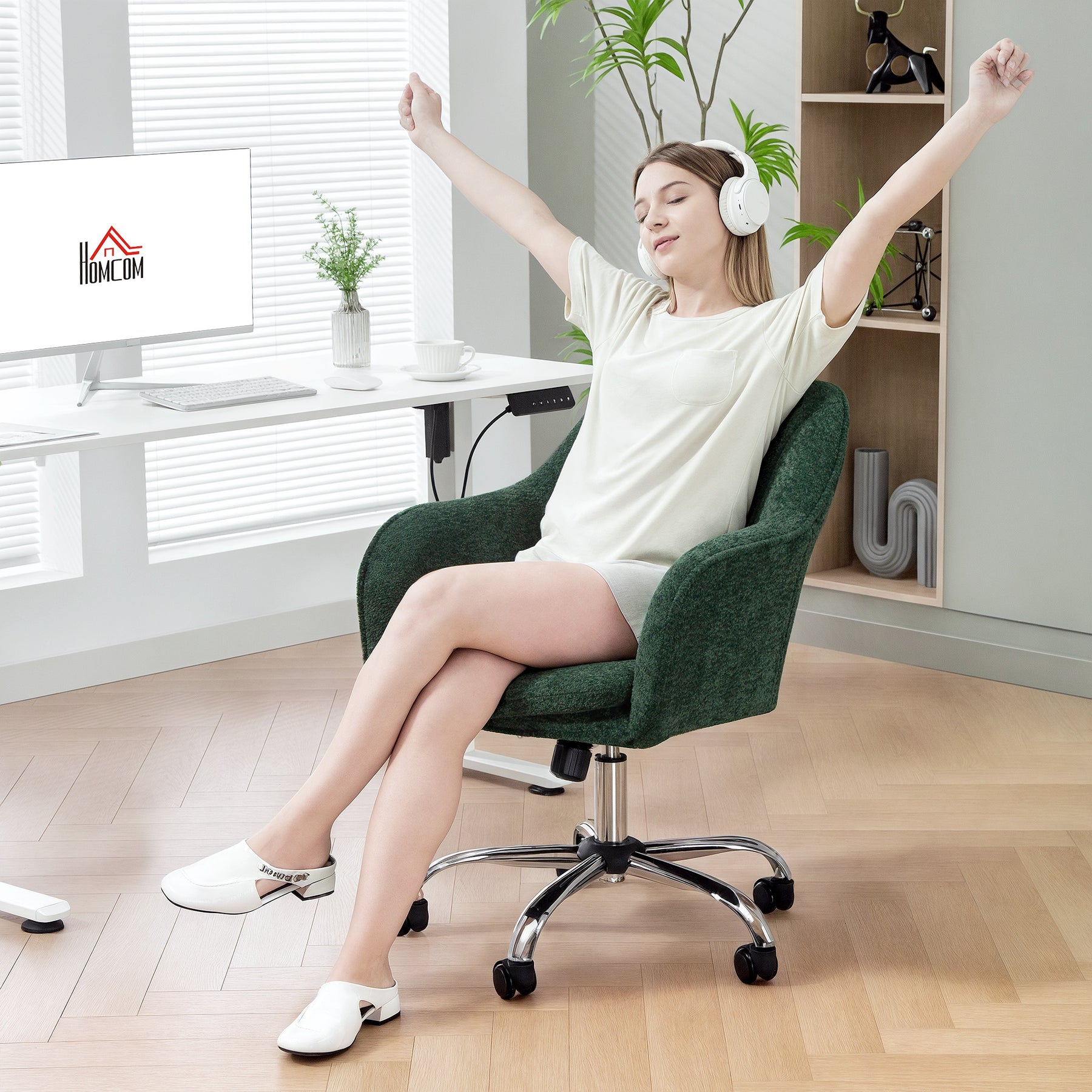 Soft, stylish and supportive - what's not to love about this HOMCOM office chair? Set the height between 48-58 cm, so you can work at the level you find most comfortable; with the mid-rise back and arms you'll be supported. Wrapped in velvet-feel fabric upholstery, this chair feels soft and looks great. Finished with a 360° swivel seat and five wheels, so it moves around easily.