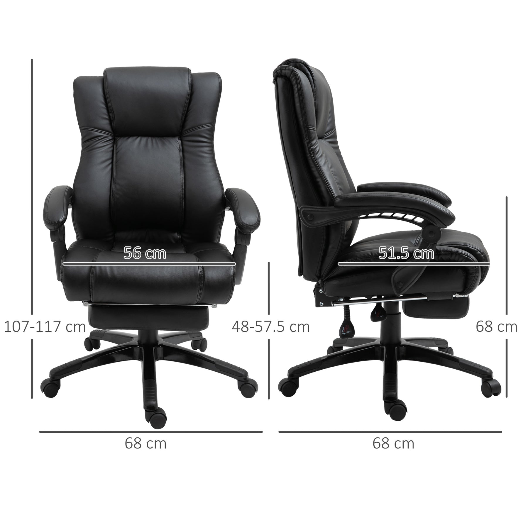 MCL Executive Office Chair for Home, PU Leather Computer Chair, Swivel Desk Chair with Footrest, Wheels, Adjustable Height, Black