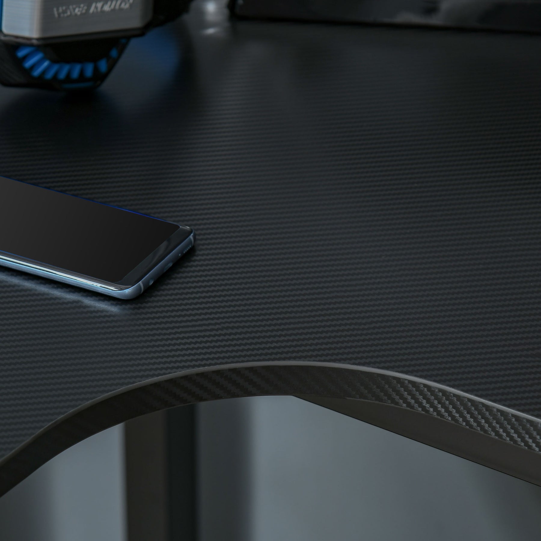 Attention to detail wins games and trust that this ergonomic gaming desk is built to win. "L" shape design gives more working space than your average table - room for two screens/monitors, keyboard, work/gaming essentials, whilst giving you plenty of freedom to work and play. The frame is made for metal for a solid base, supporting up to 50 kg. Robust particle board table-top is covered in a textured finish for a standout look. Completed with two cable holes at the back.