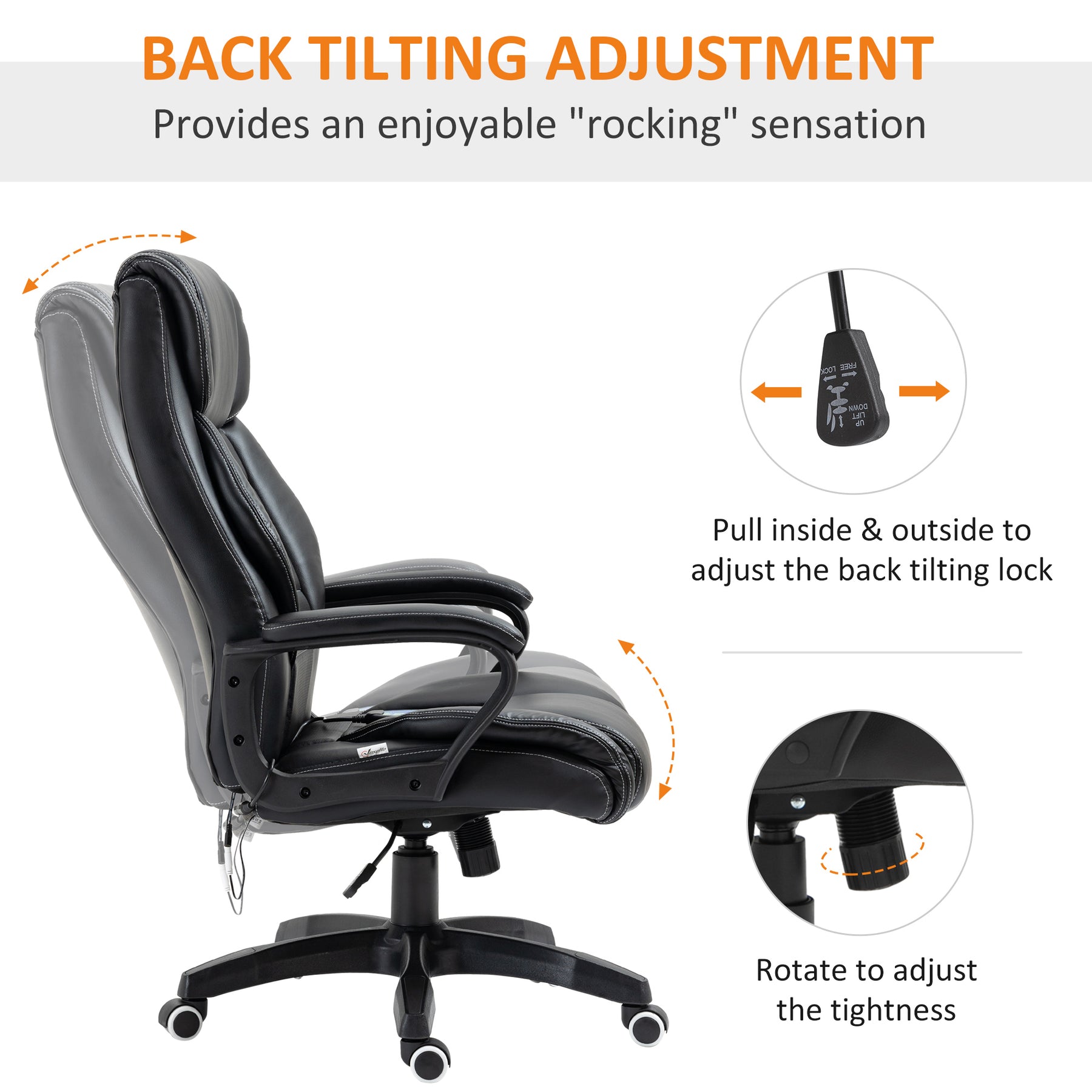 MCL Office Chair with 6-Point Maaage, PU Desk Chair with Padded Seat and Armrest, Computer Chair with Tilt Function for Home, Black