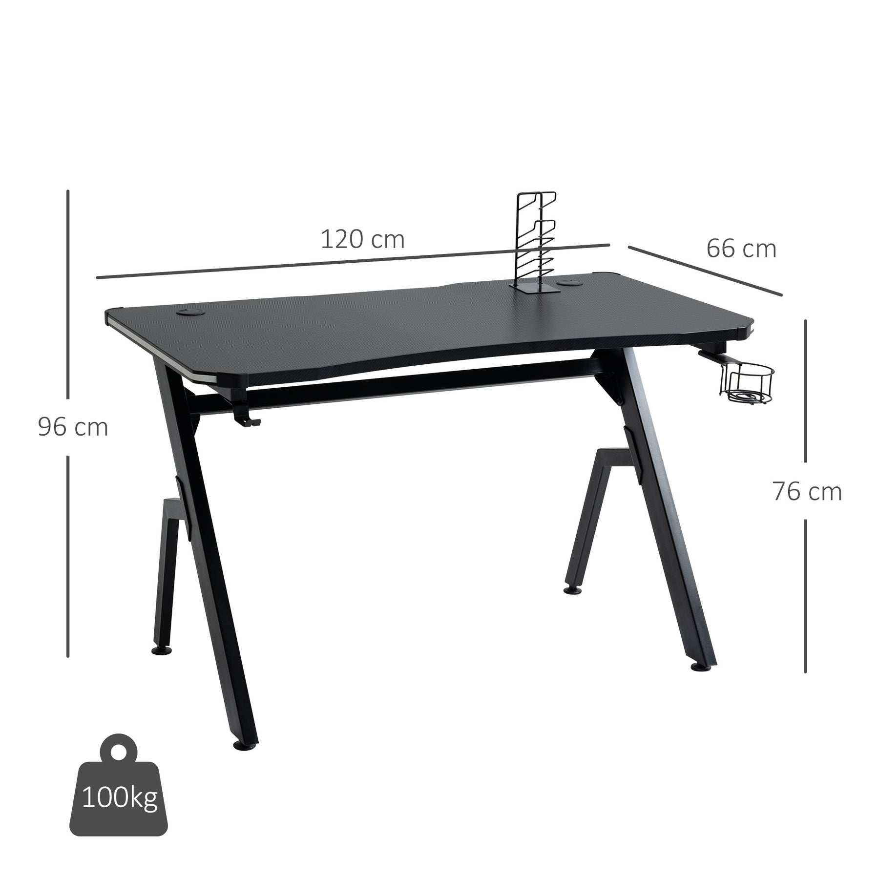 MCL RGB 120 x 66cm Gaming Desk, Computer Table with Carbon Fibre Surface, Headphone Hook, Cup Holder, Controller Rack, Home Office Desk, Black