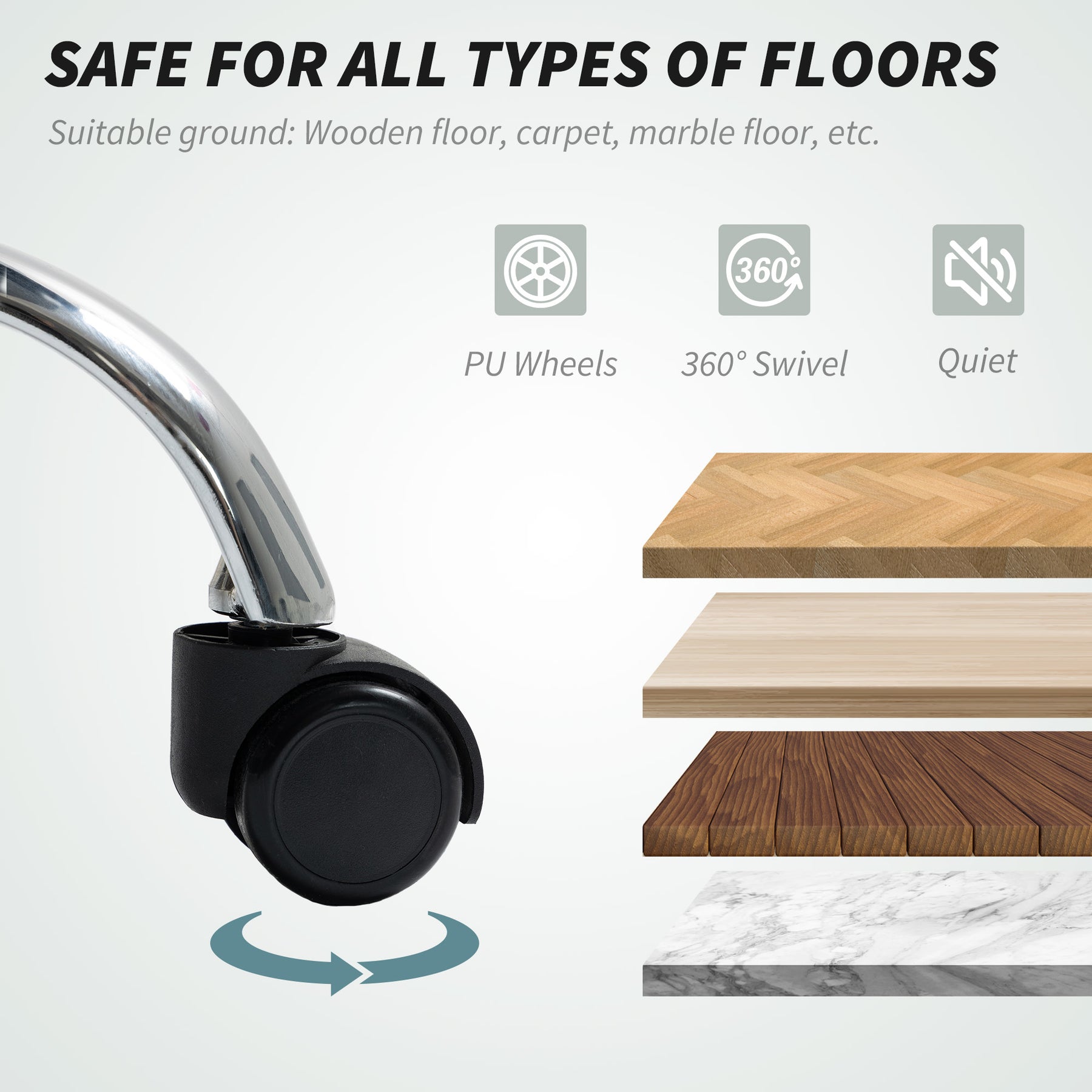 - Swivel wheels and seat adapt to dynamic office environments. PU wheels protect all floor types from damage