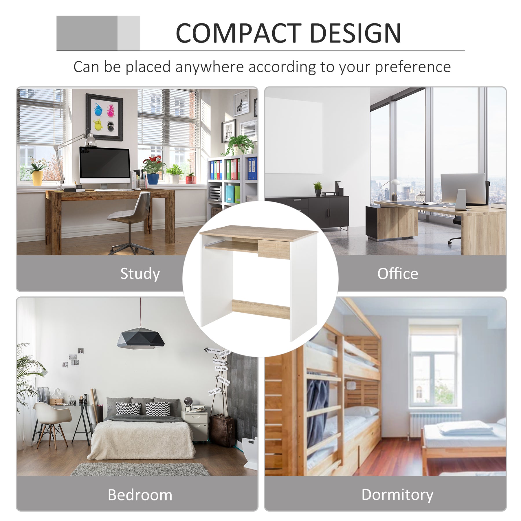 MCL 80cm Compact Computer Desk with Keyboard Tray, Home Office Desk with Drawer for Bedroom Study, Oak