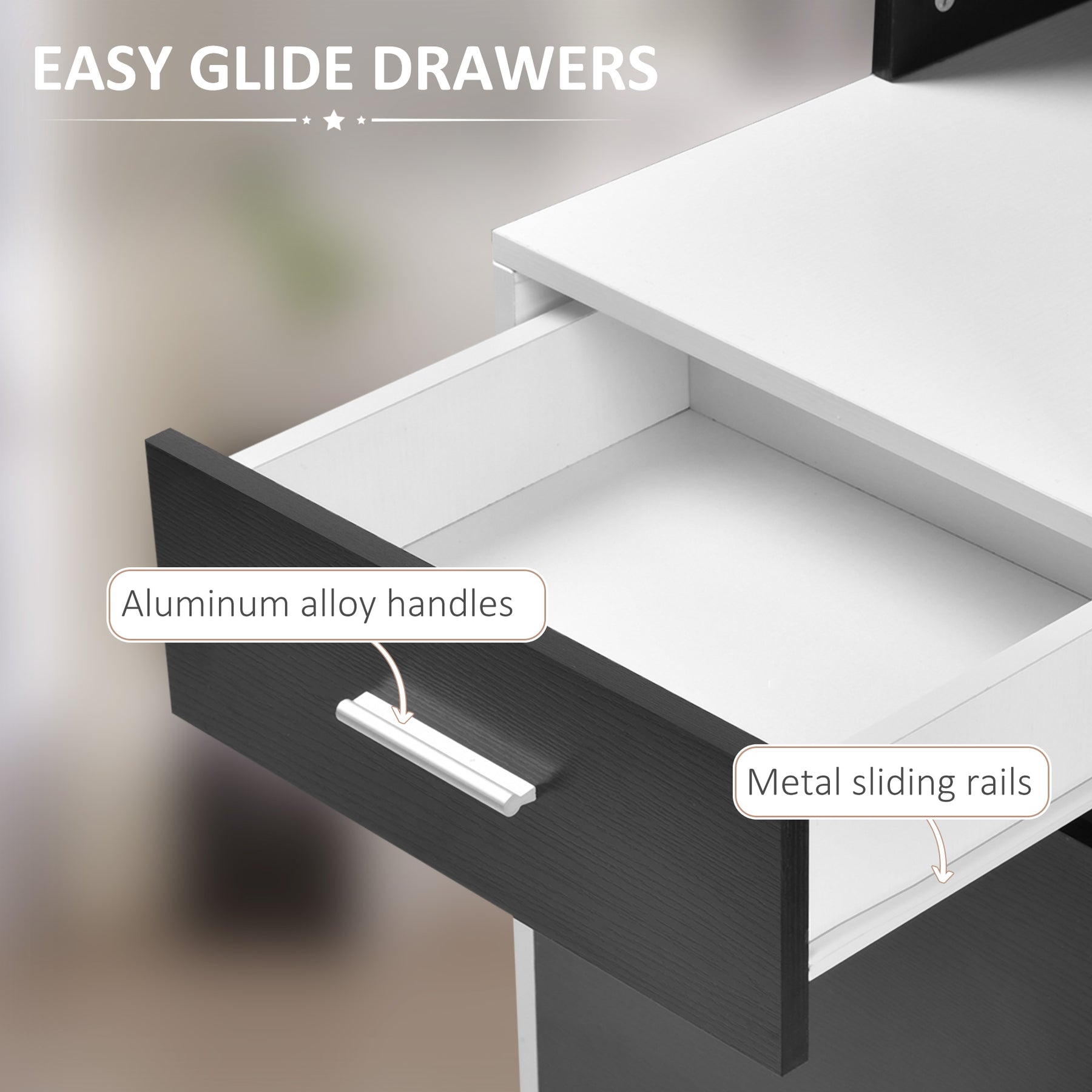 MCL Computer Desk with Drawers and Storage Shelves, Office Desk Writing Table with Printer Stand, Large Workstation for Study Play Work Home Office, 137 x 55 x 92cm, Black and White
