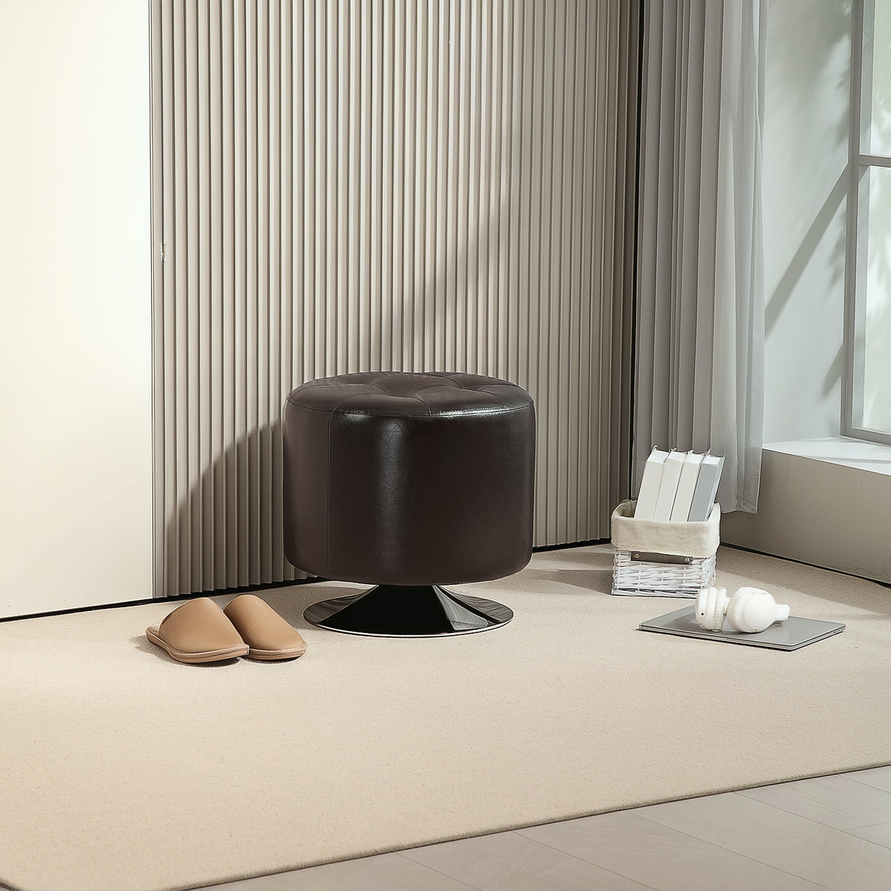 A stylish and comfortable place to sit - and rest feet - comes in the form of this piece from . Thick sponge padding to sink with moderate amount of support. Wrapped in PU leather, this smooth upholstery is stylish and sleek - a compliment for your home and office space. The seat is fitted onto the metal base for complete balance; also swivels a full 360° for freedom of moving when seated. Finished with a bottom floor pad for protection.