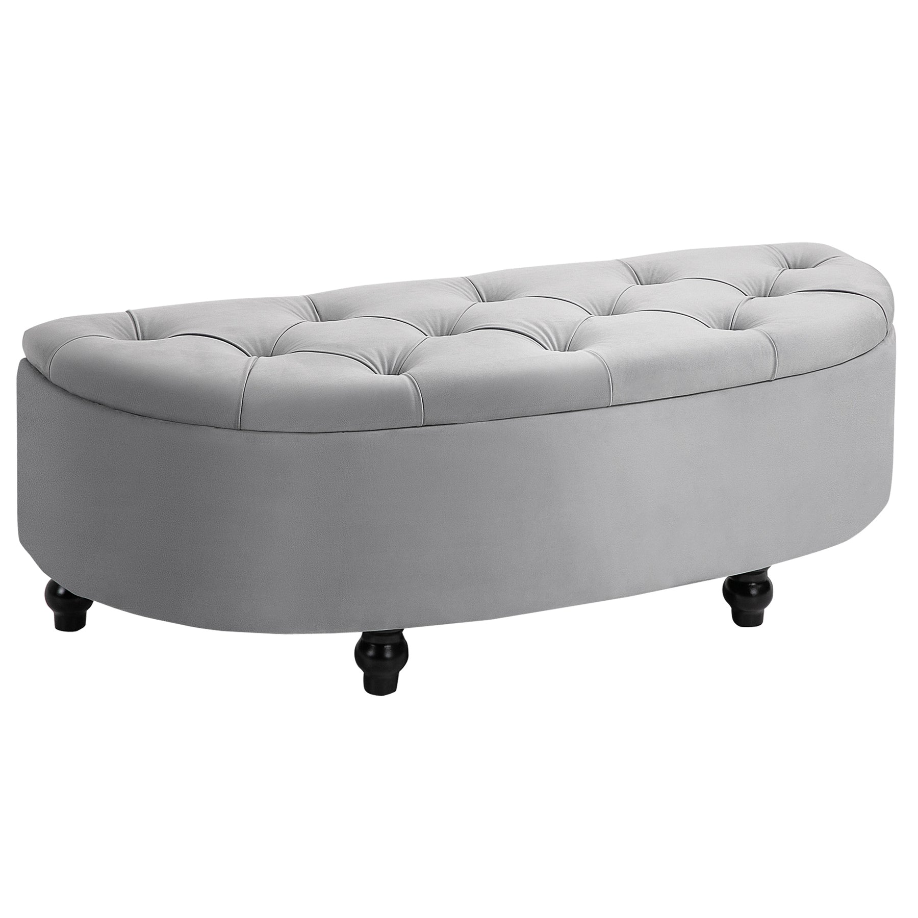 MCL Semi-Circle Ottoman Storage Bench, Bed End Bench, Tufted Upholstered Window Seat Footrest Stool with Rubberwood Legs for Bedroom & Entryway, 120 x 46 x 42 cm, Light Grey