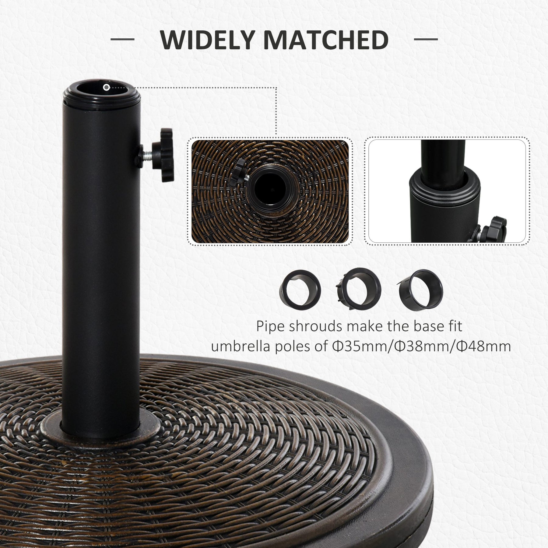 • Fits Umbrella Pole: 35mm, 38mm, 48mm