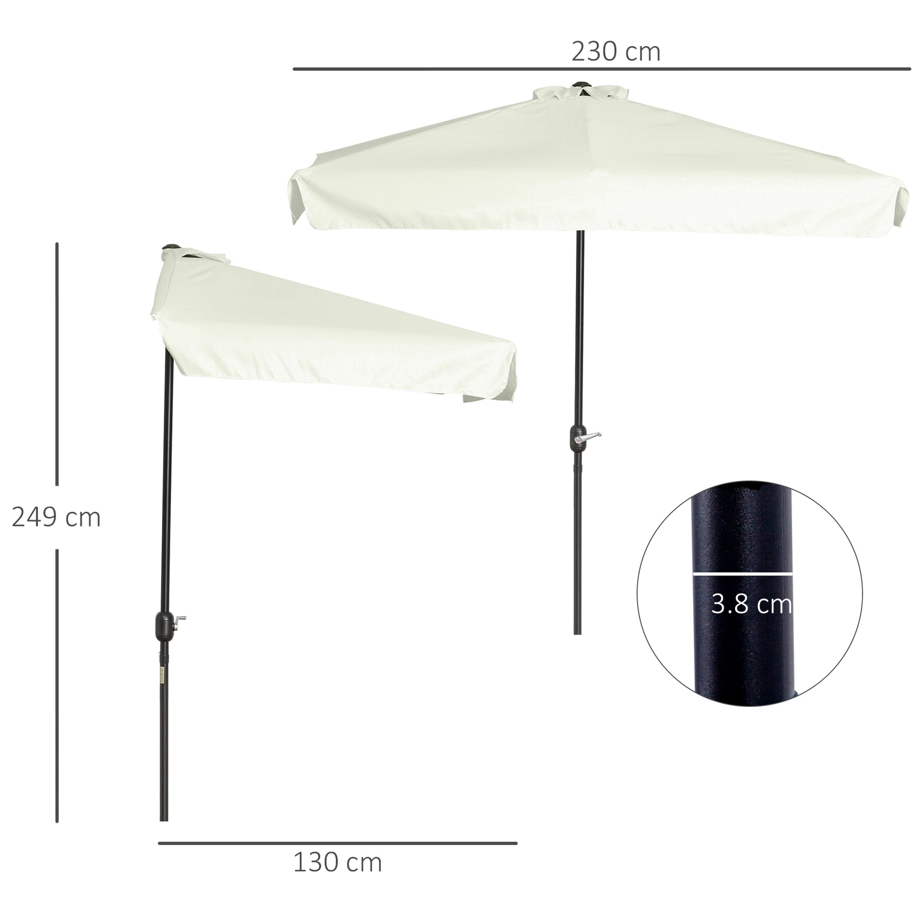 MCL 2.3m Half Parasol Semi Round Umbrella Patio Metal Frame Crank Handle for Balcony-- NO BASE INCLUDED, Off-White