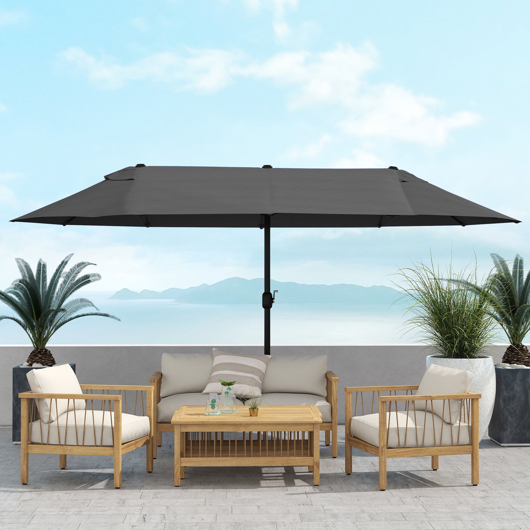 - Double canopy design garden umbrella covers a 4.6M diameter area. Plenty of shade