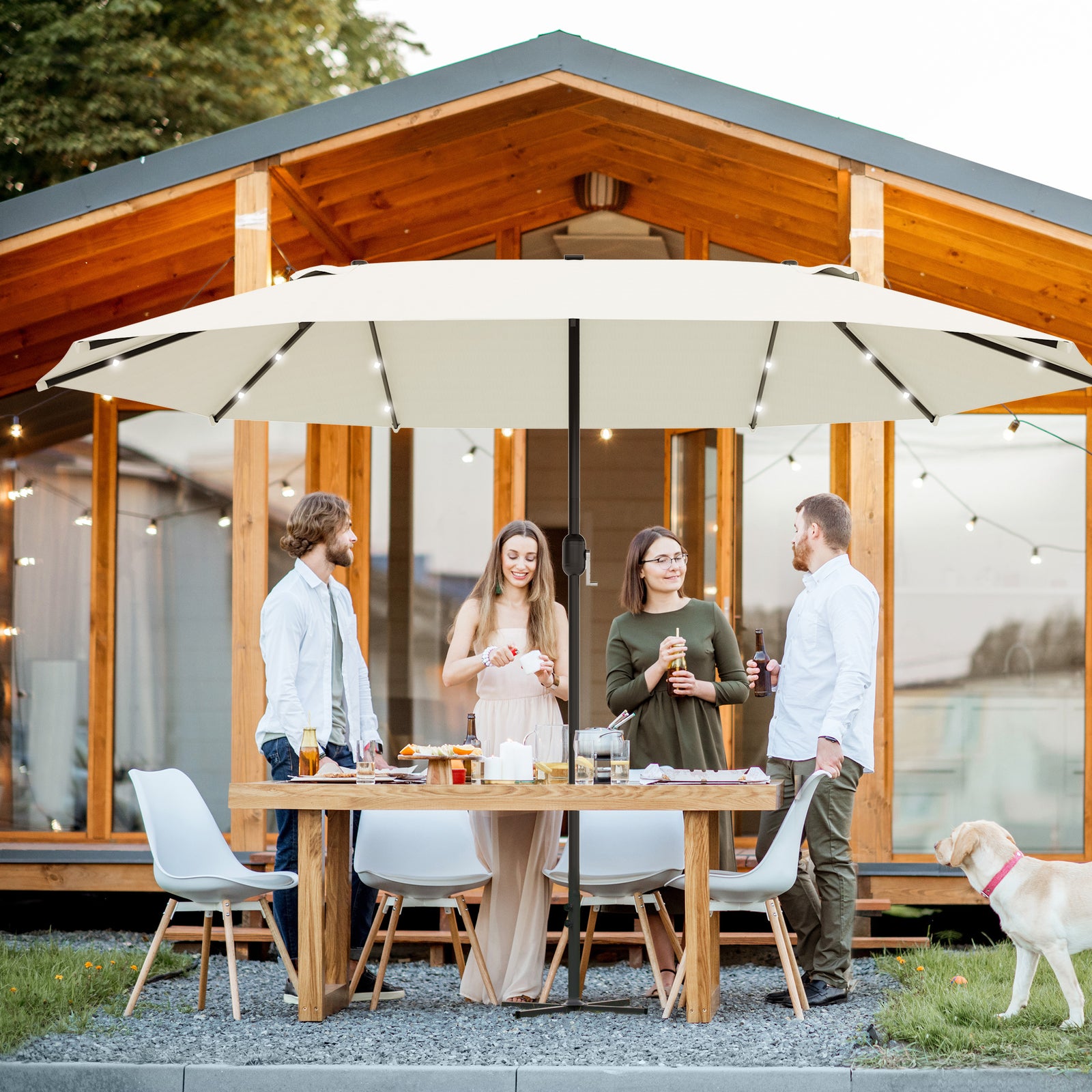 MCL 4.4m Double-Sided Sun Umbrella Patio Parasol LED Solar Lights Cream White
