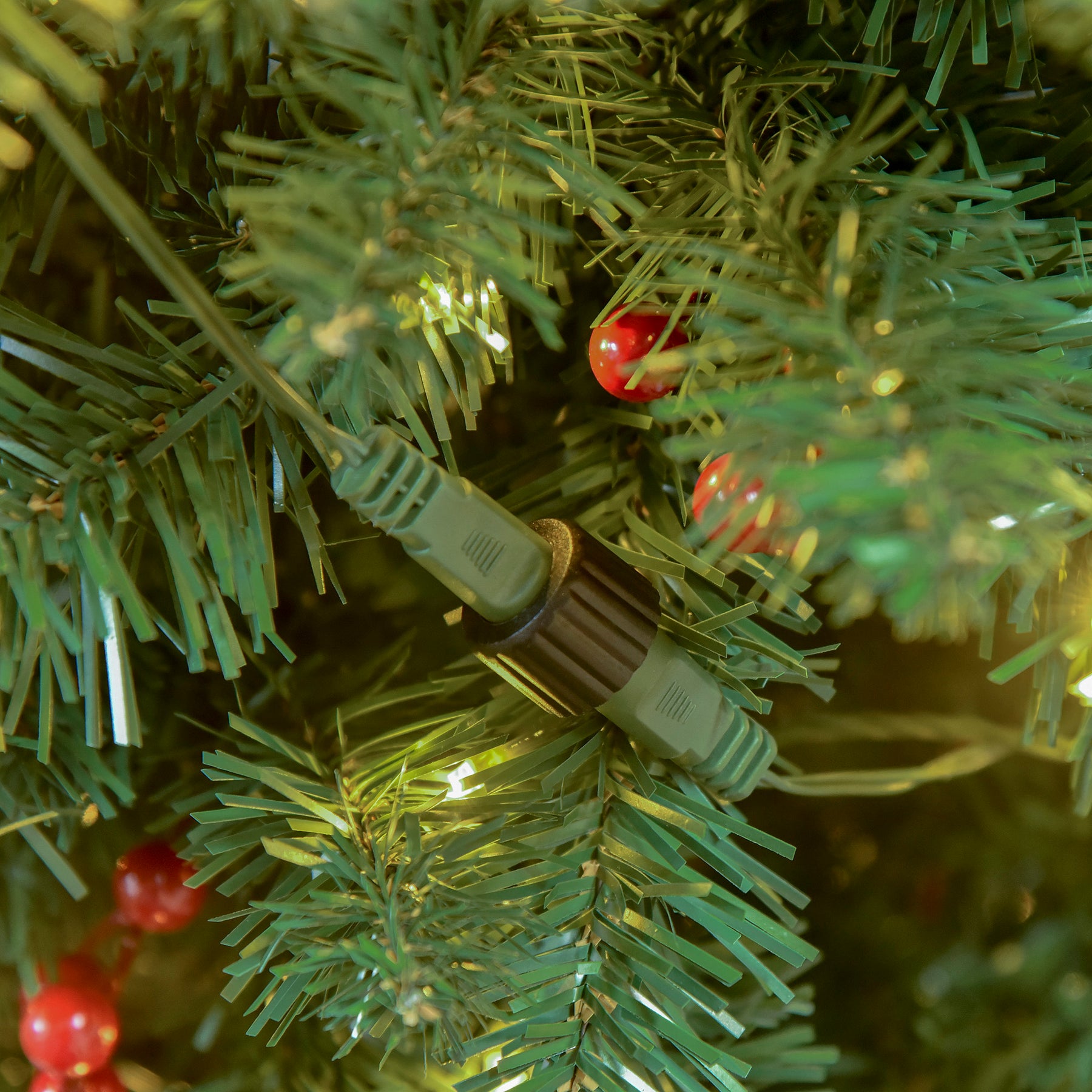 Step into the Christmas period with this artificial tree from MCL. No more wrestling with tangled wires, just plug in this pre-lit piece and watch the 350 warm white LED lights twinkle - makes life so much easier for you. Perfect for popping your presents under, this decoration will bring festive cheer to your home all season long. With a removable base so it stands upright all day and night, it's complete with red berries all over for an injection of colour.