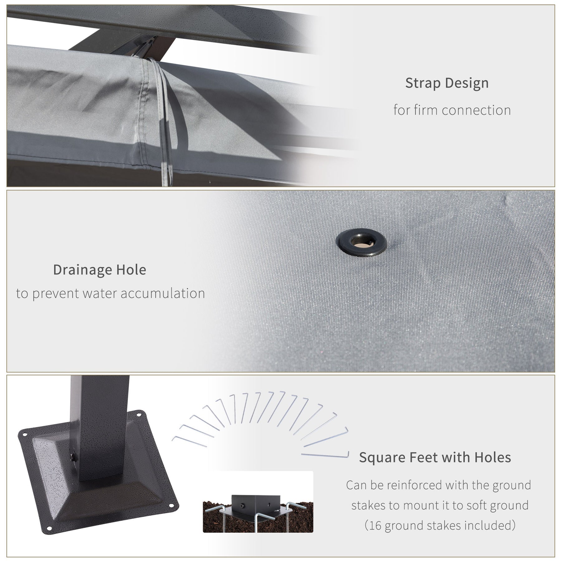MCL 3 x 3(m) Metal Retractable Pergola, Garden Gazebo Metal Pergola Canopy Outdoor Sun Shade Shelter for Party BBQ, Grey