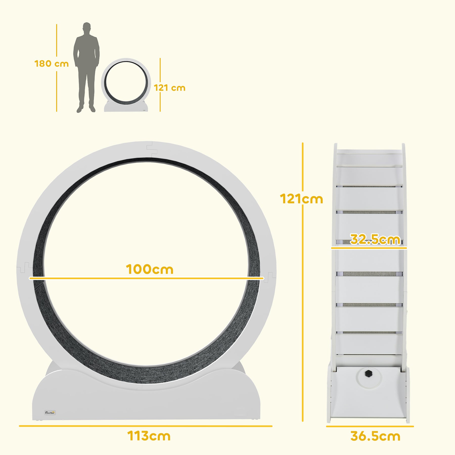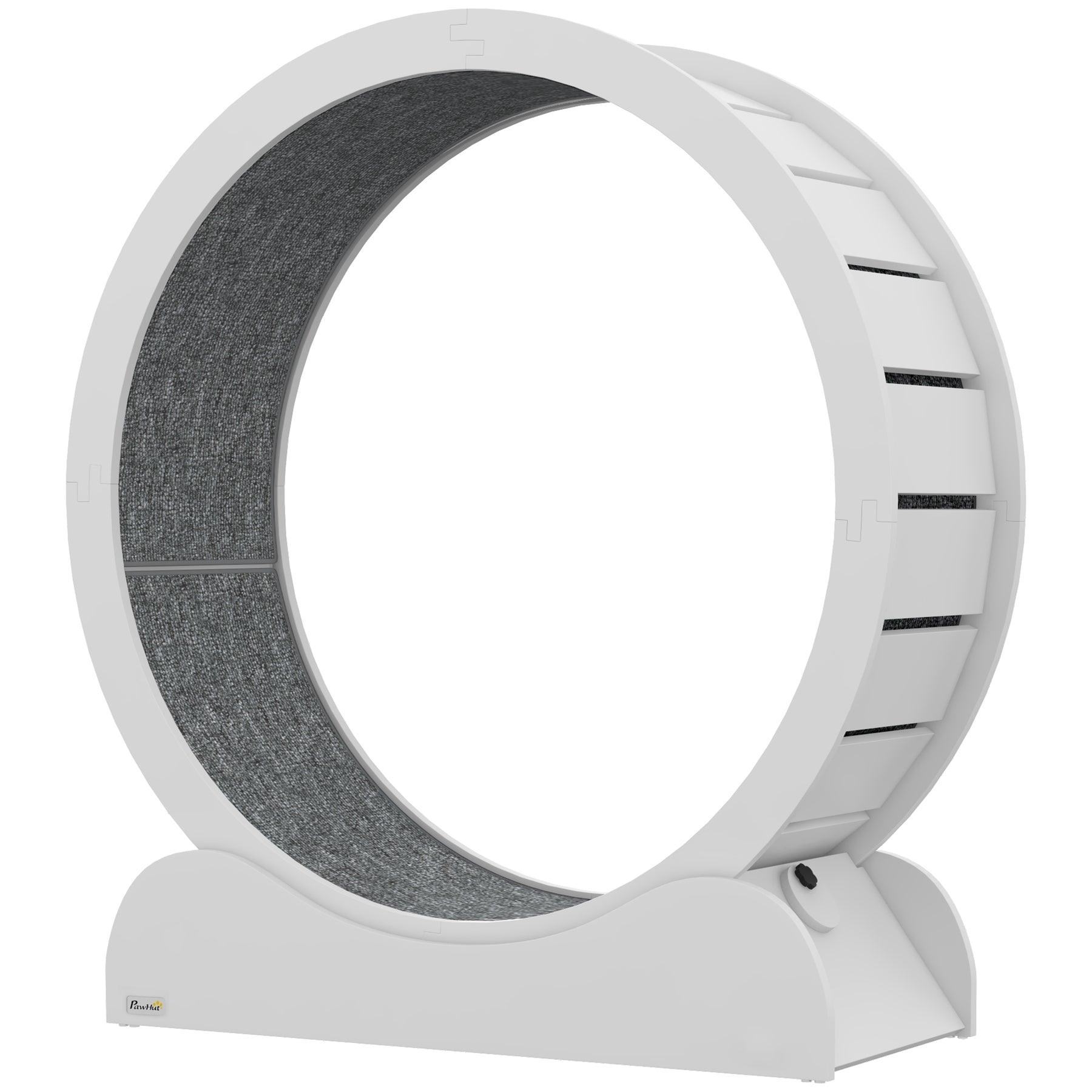 Even at home, cats can stay active and heathy, thanks to this cat exercise wheel. The inside is covered with a cloth-like material – it's soft on their paws, keeping them comfortable when running. There's a brake on the base to stop the running wheel when needed – and when they're feeling active again, just turn it back on. A whit wood grain piece, its minimalistic appearance blends nicely with any decoration. Perfect for house cats, they can exercise at home.