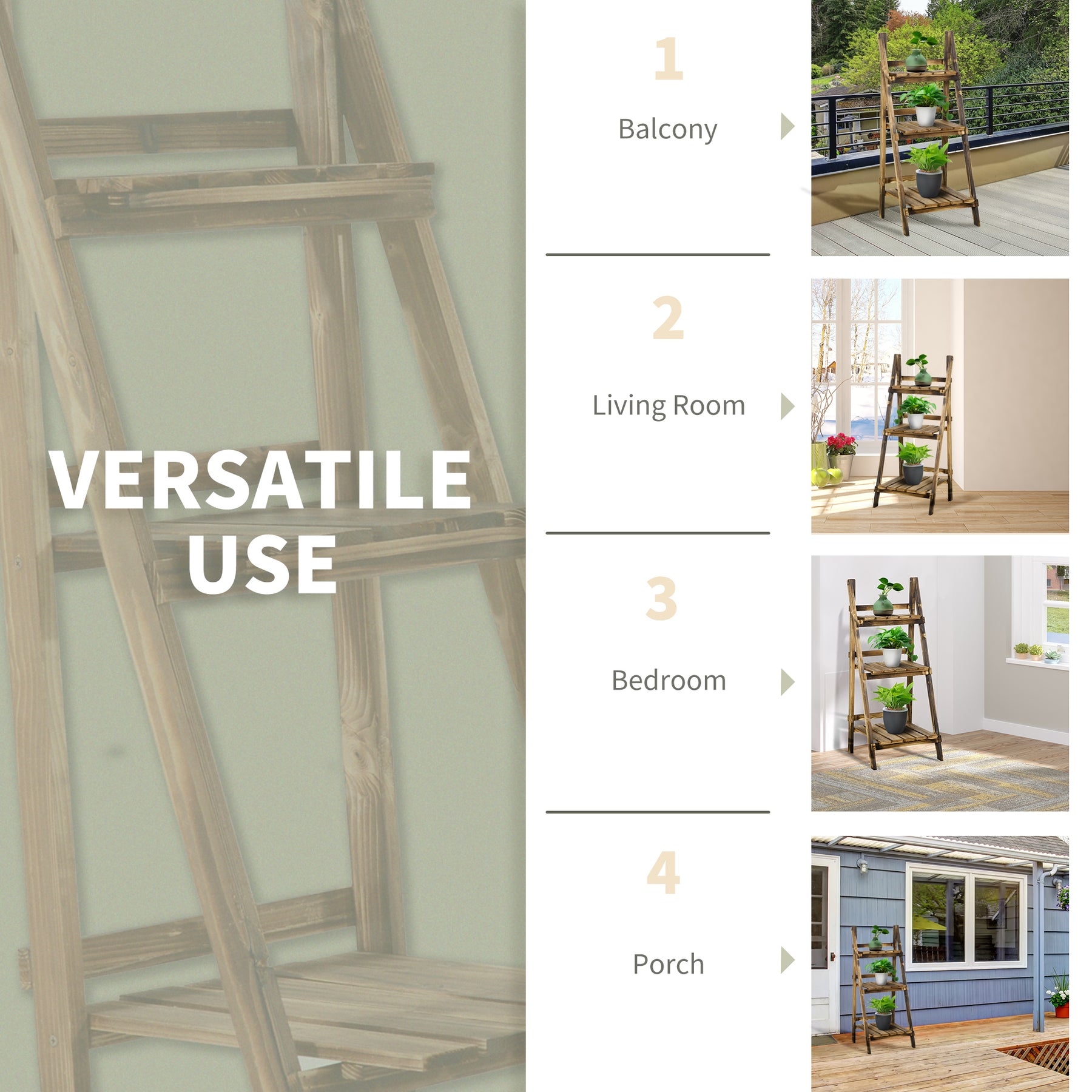 MCL Wooden Folding Flower Pot Stand 3 Tier Garden Planter Display Ladder Gardener Storage Shelves Rack Herb Holder (40L x 37W x 93H cm)