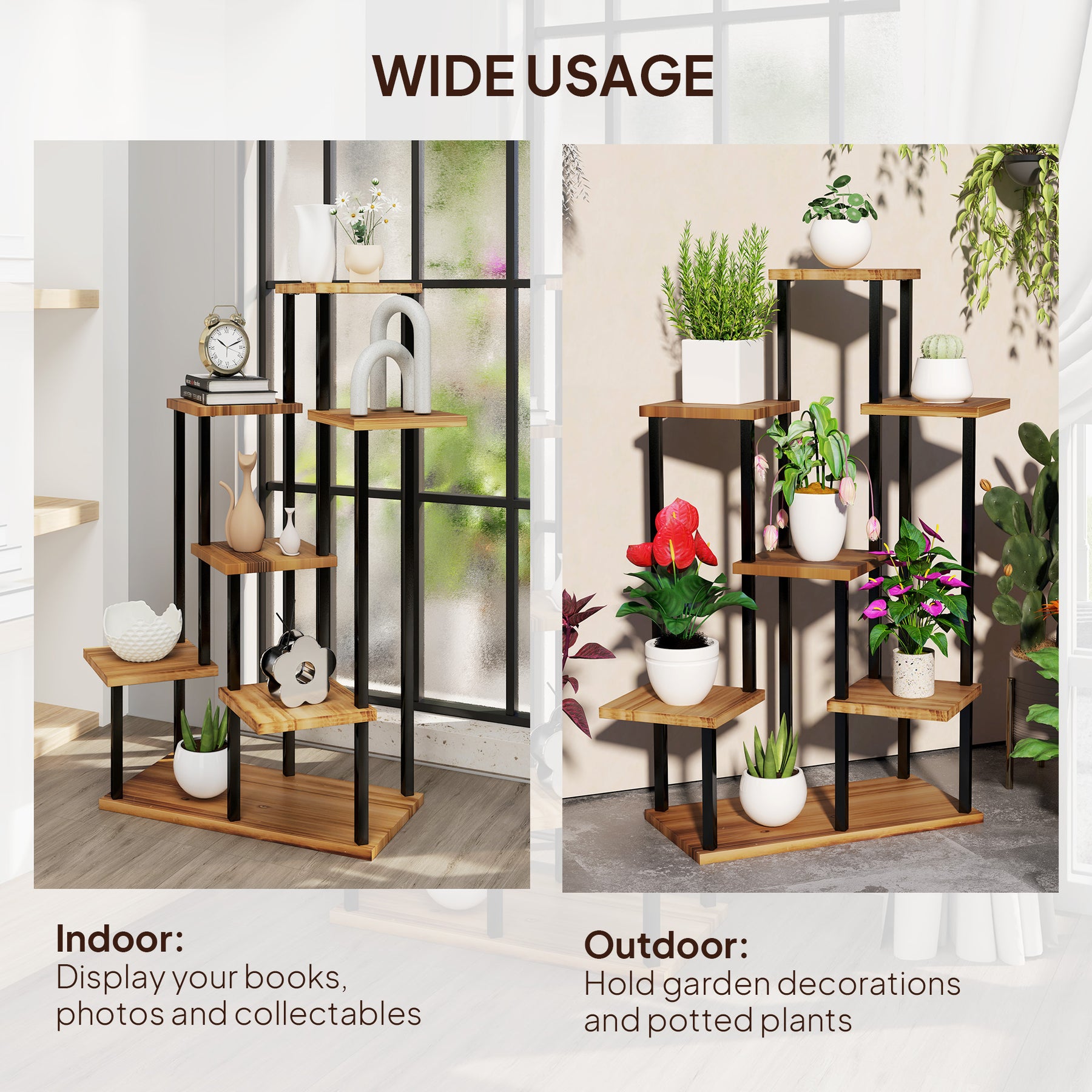 Bring greenery to many corner spots with this plant shelf. The five tiers offer seven staggered shelves: holds up to seven plants, with plenty of space around each shelf - lots of growing room. The wooden shelves are naturally strong and beautiful - corner plant stand is complete with a steel frame for all the support it requires.