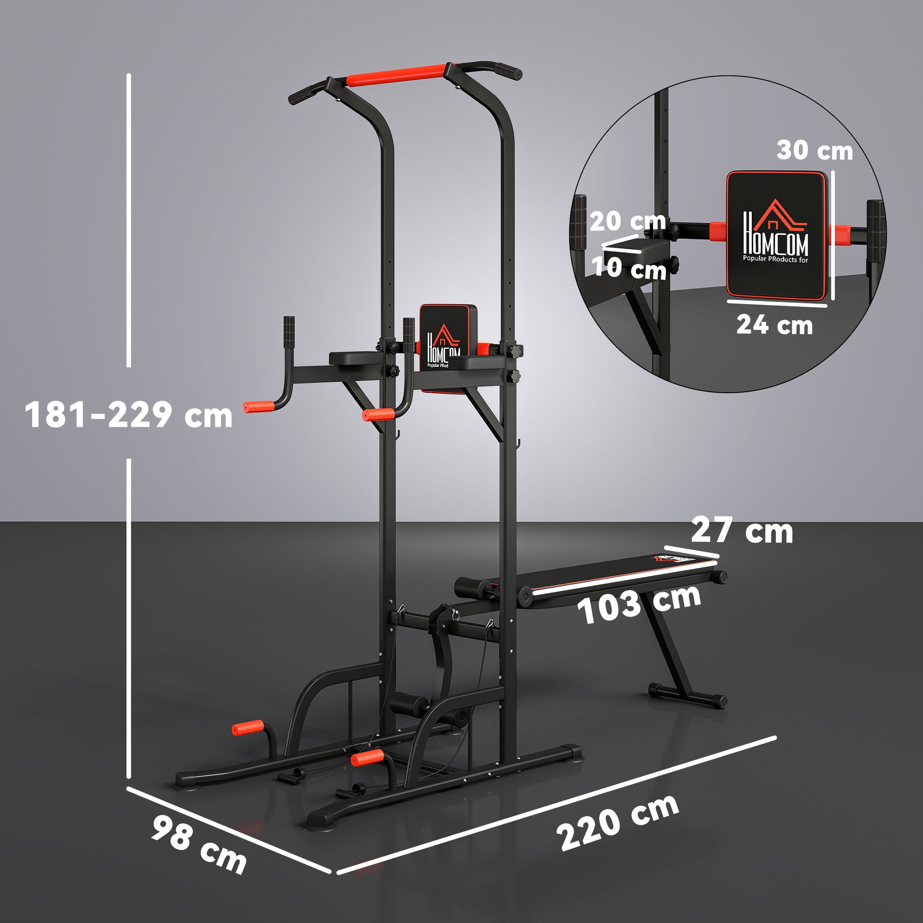 MCL Multifunction Power Tower Home Workout Dip Station w/ Sit-up Bench Push-up Bars and Tension Ropes Fitness Equipment Office Gym Training