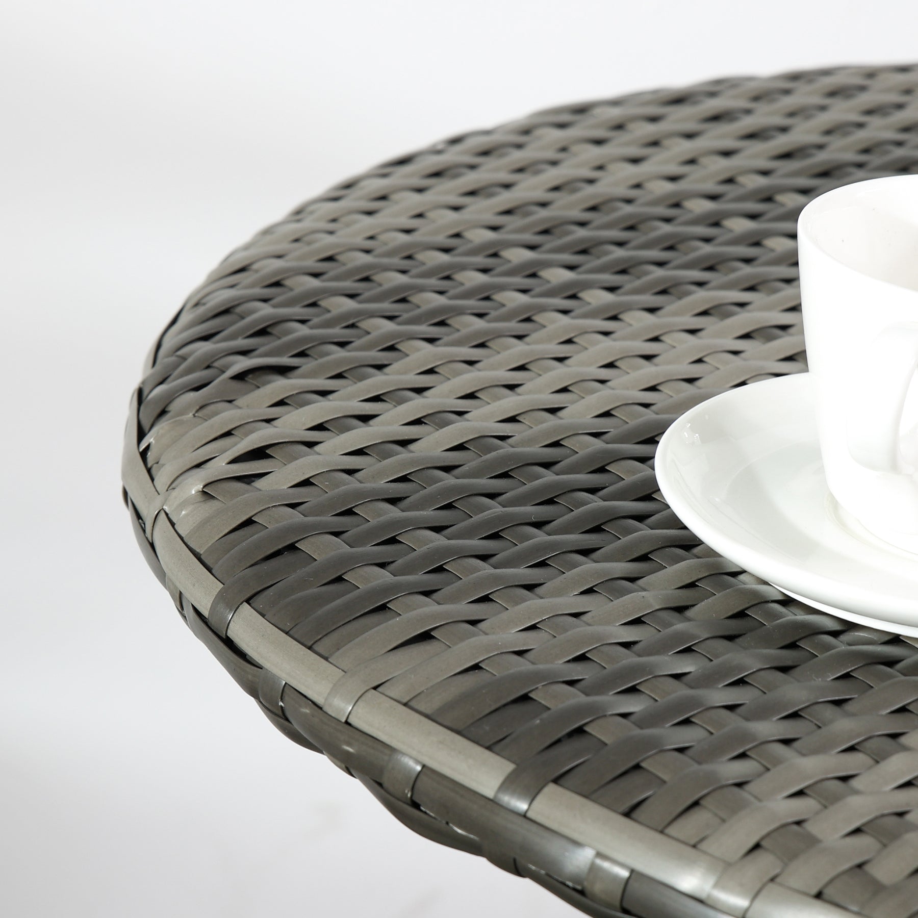 This bistro table set also comes with two chairs: relax with company outdoors. Strong metal frames, with plastic wicker for a beautiful look. All pieces are foldable - carry, move and store easily. A zero-fuss piece made for every outdoor space.