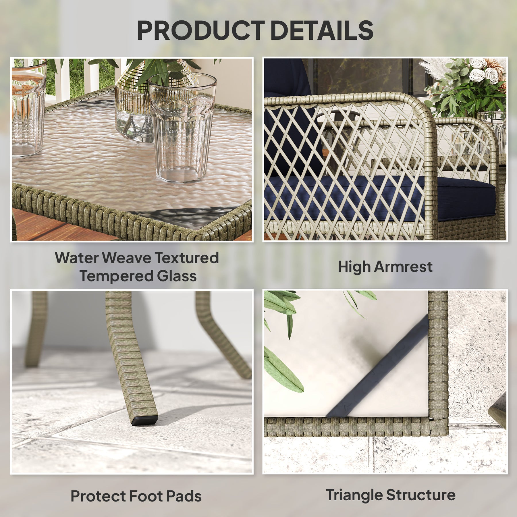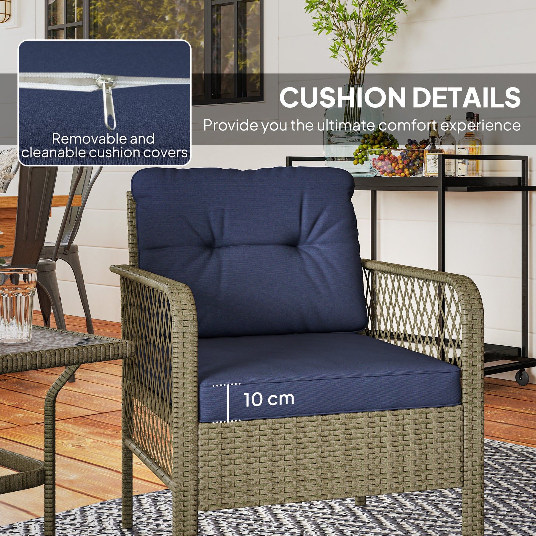 3 Pieces Rattan Bistro Set with Glass Top Coffee Table, Chairs and Cushions for Outdoor, Patio, Balcony, Charcoal Grey