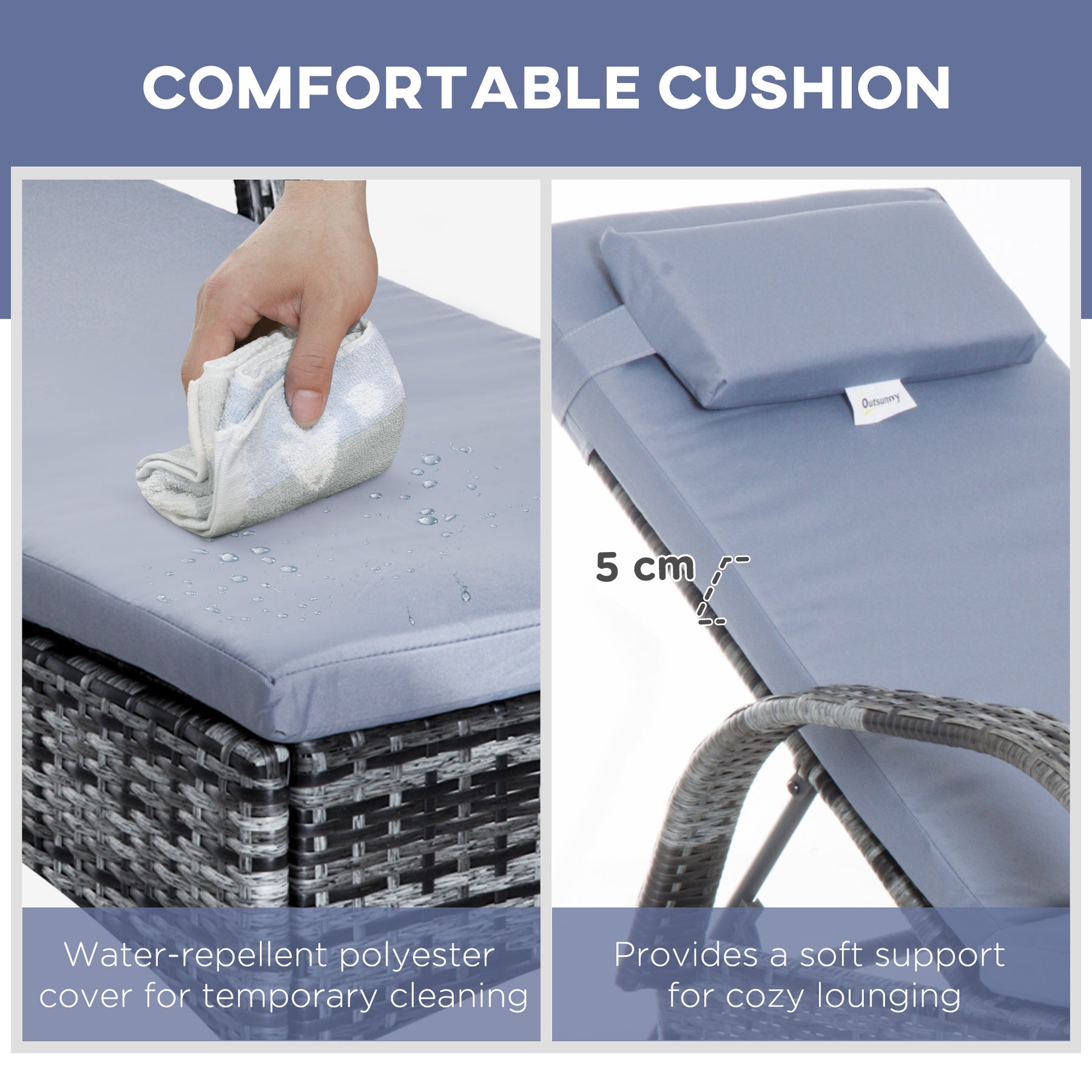 The rattan patio chaise lounge set from comes complete with 2 loungers, 1 side table and cushions. The seat has 5 adjustable positions to give maximum relaxation and comfort. The side table also has a glass top to keep your drinks at easy reach, and the set can be used indoors and outdoors.