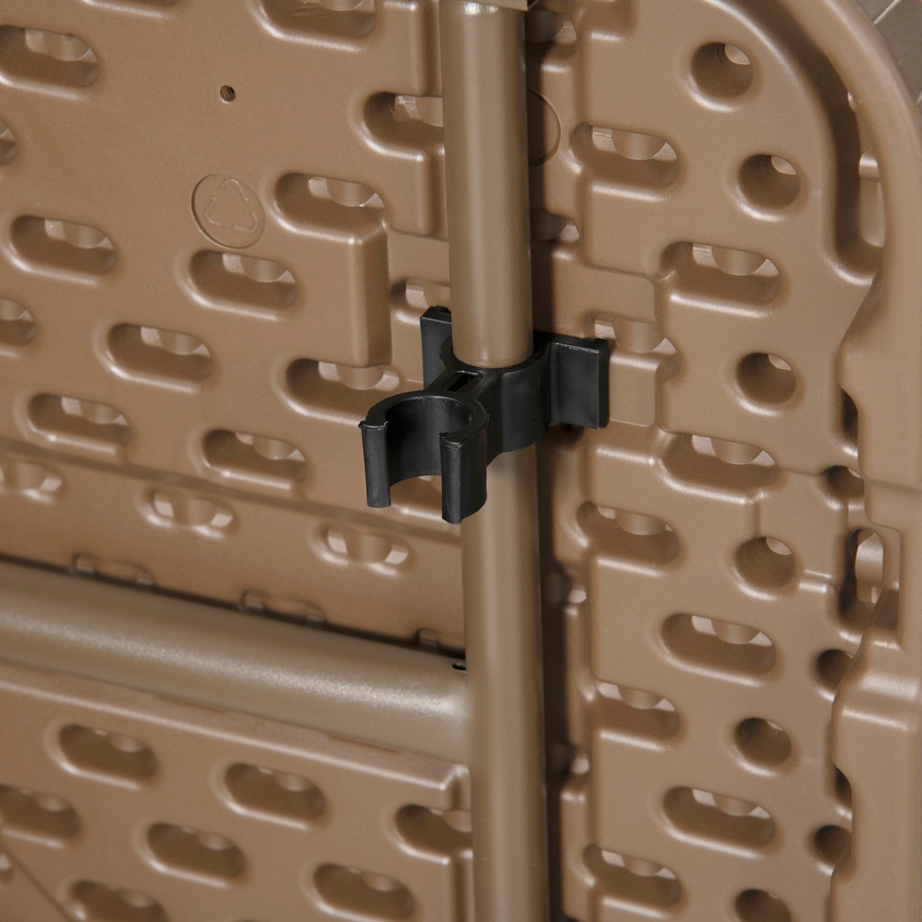 This resin table and chairs set offers a stylish and sturdy place to dine together, outdoors. The rust-resistant metal frames mean a strong core, fitted with plastic seats, back and tabletop, in a rattan-effect design for a stylish look. The large table is spacious enough for everyone to gather round and dine from. When done, or whenever you want to move the set, all the pieces can be folded.
