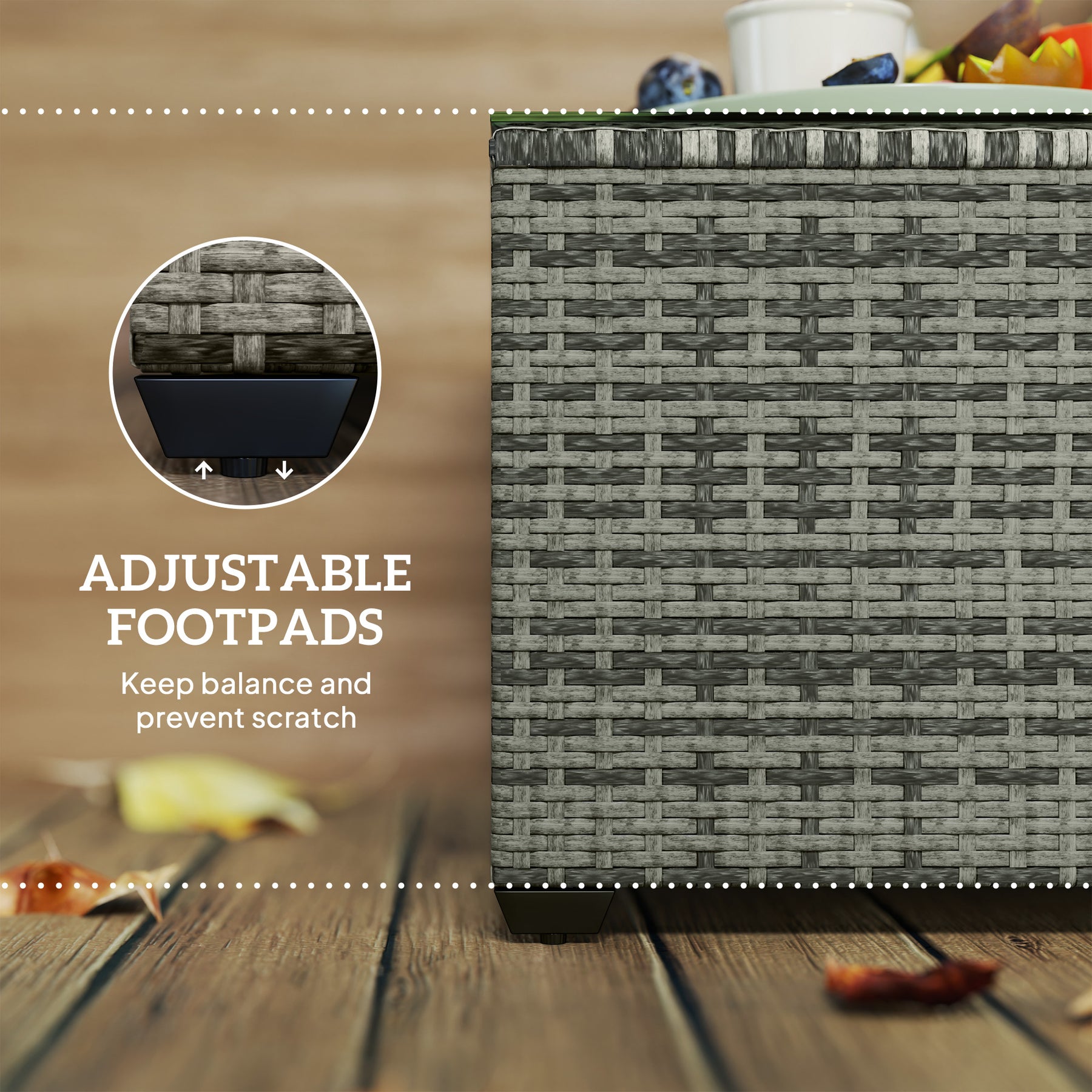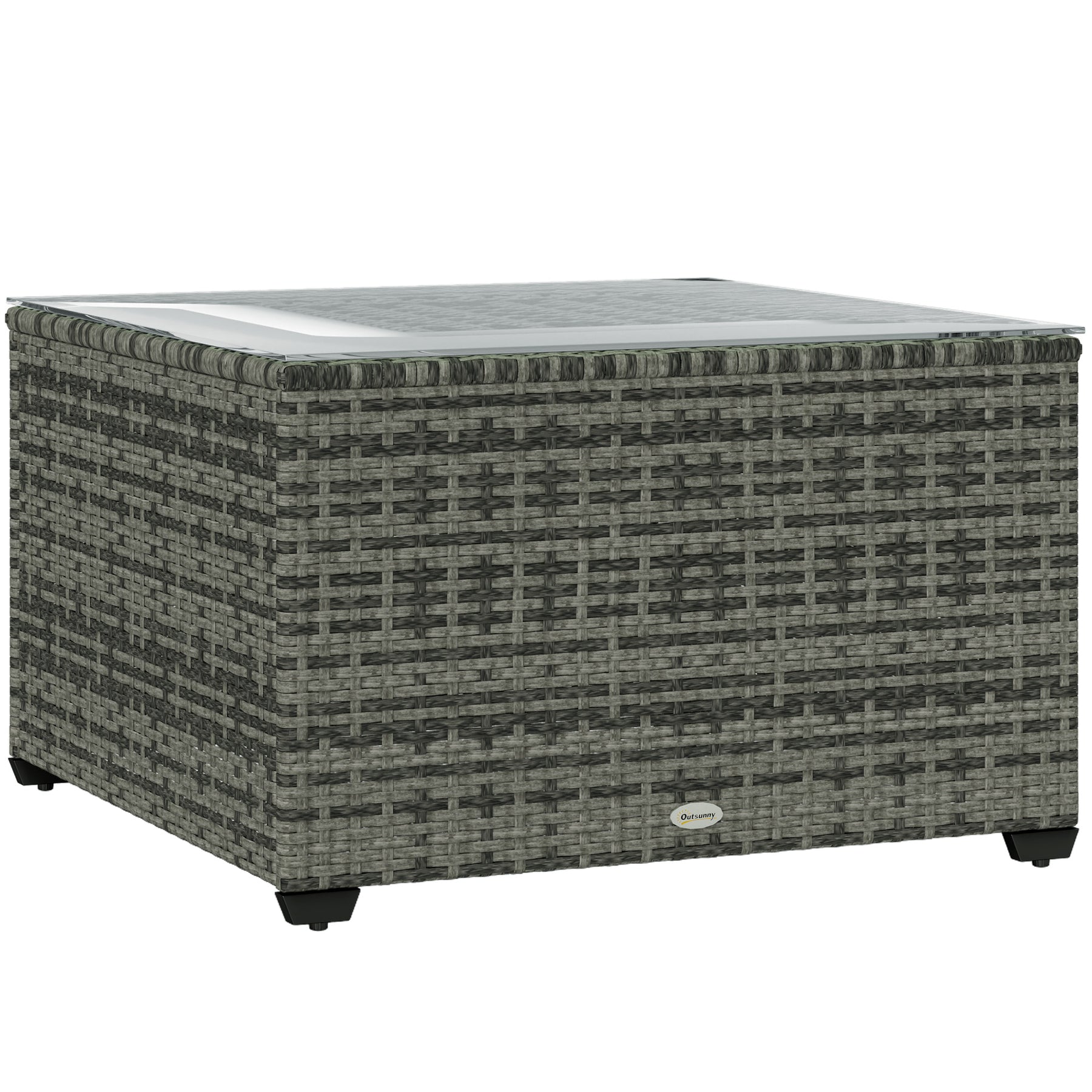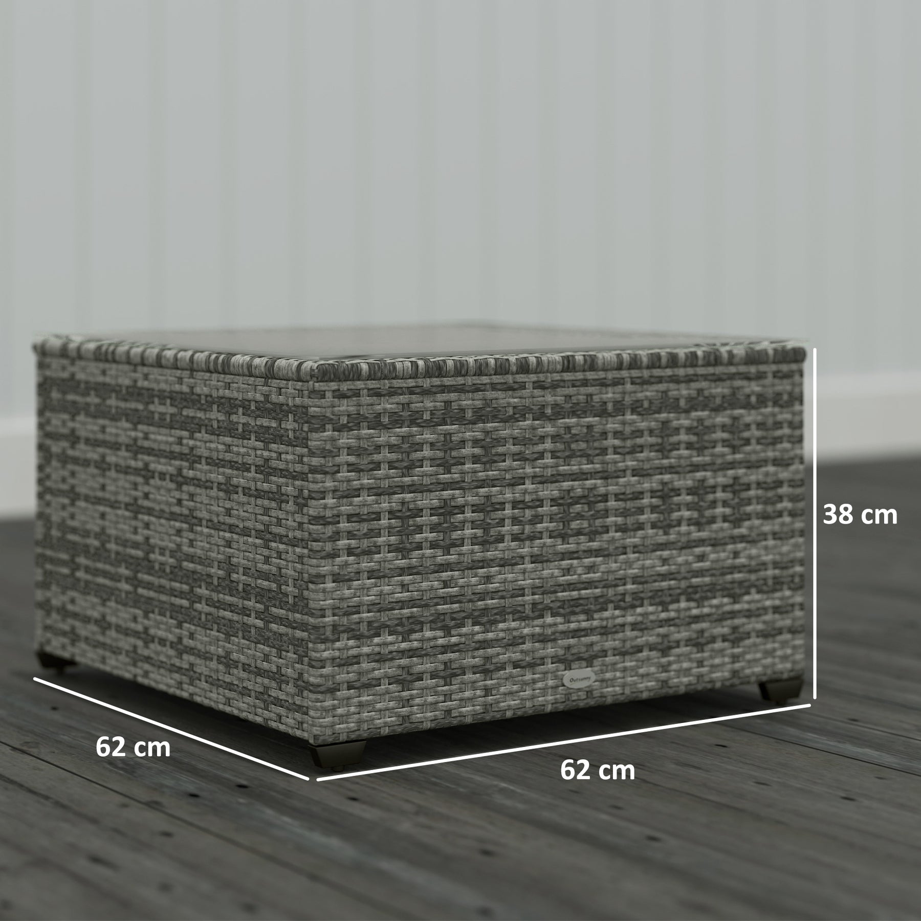 Forever style for your garden with this rattan garden table. A galvanised steel frame with powder coating for a strong core structure; wrapped in tough plastic rattan, the garden side table effortlessly matches your current rattan garden furniture. It's fitted with a 5mm thick tempered top for a sleek touch and a safe holding place. Complete with adjustable feet for stability.