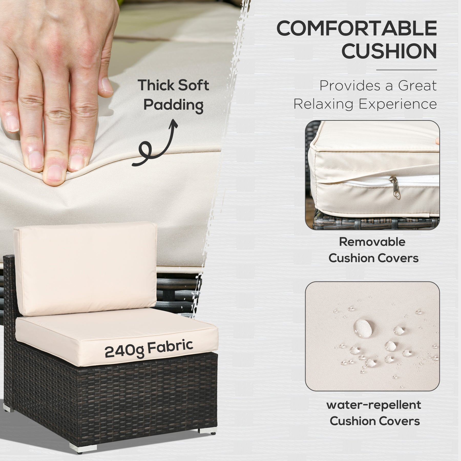 7-Seater PE Rattan Corner Sofa Set, Garden Furniture Set, Patio Wicker Sofa Seater w/ Cushion, Washable Cushion Cover & Tempered Glass Table, Brown
