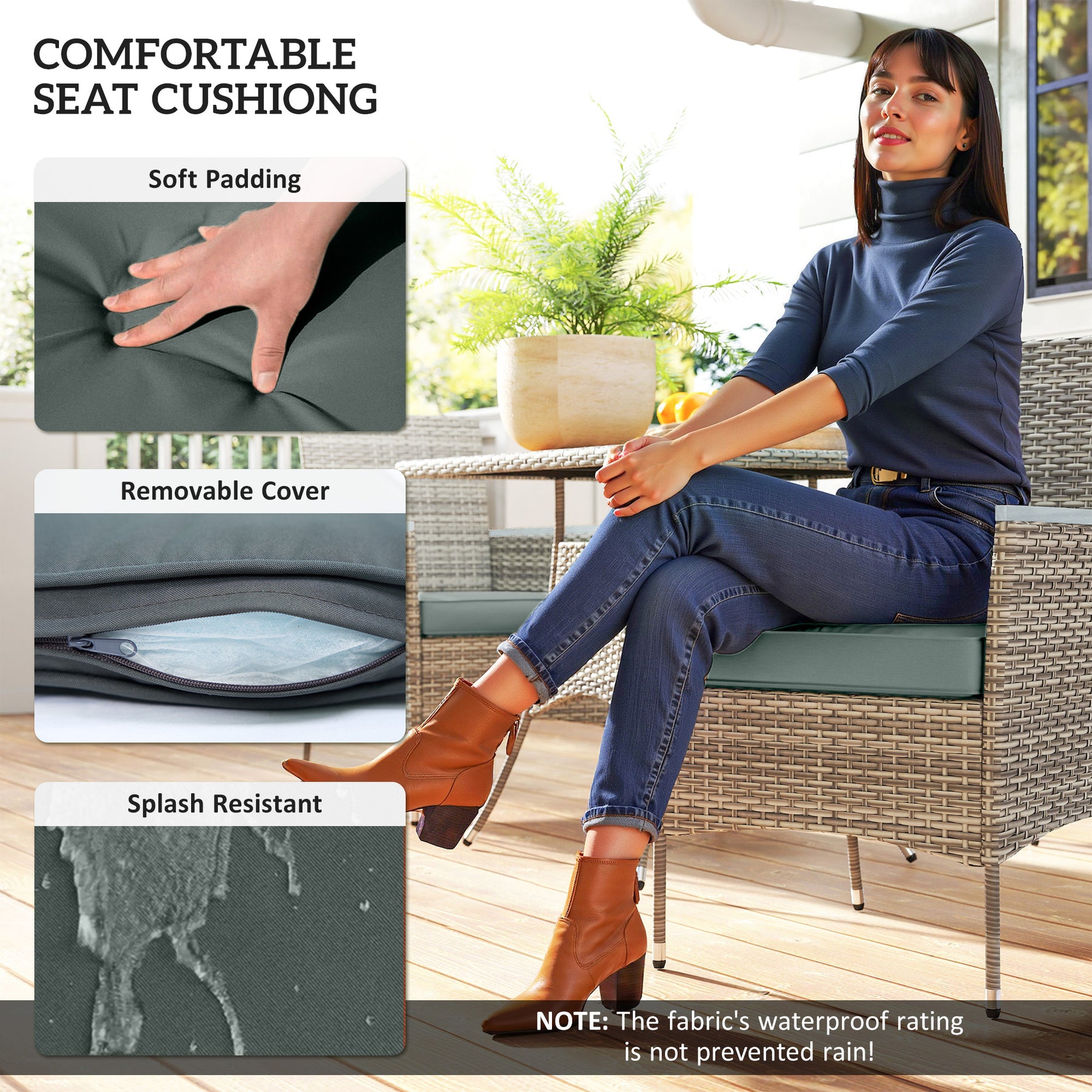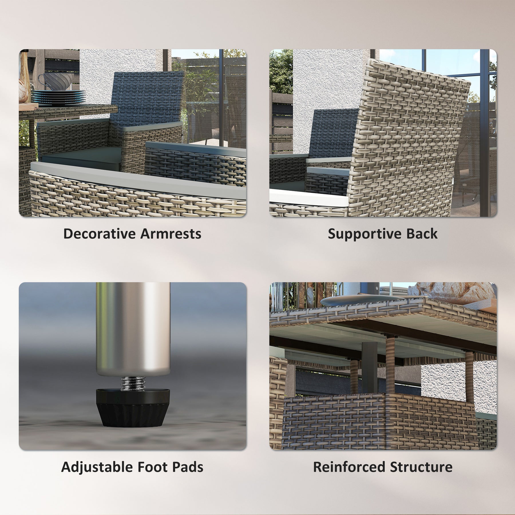 Relaxing outdoor times with protection: look to this rattan outdoor dining set. It's formed of four chairs and a square table to gather around with company.; the table features a Ф50mm middle hole for a parasol umbrella, with beautiful acacia wood panels. With steel frames for a strong core, the patio table and chairs are wrapped in stylish and protective plastic wicker. Complete with padded seat cushions for comfort.