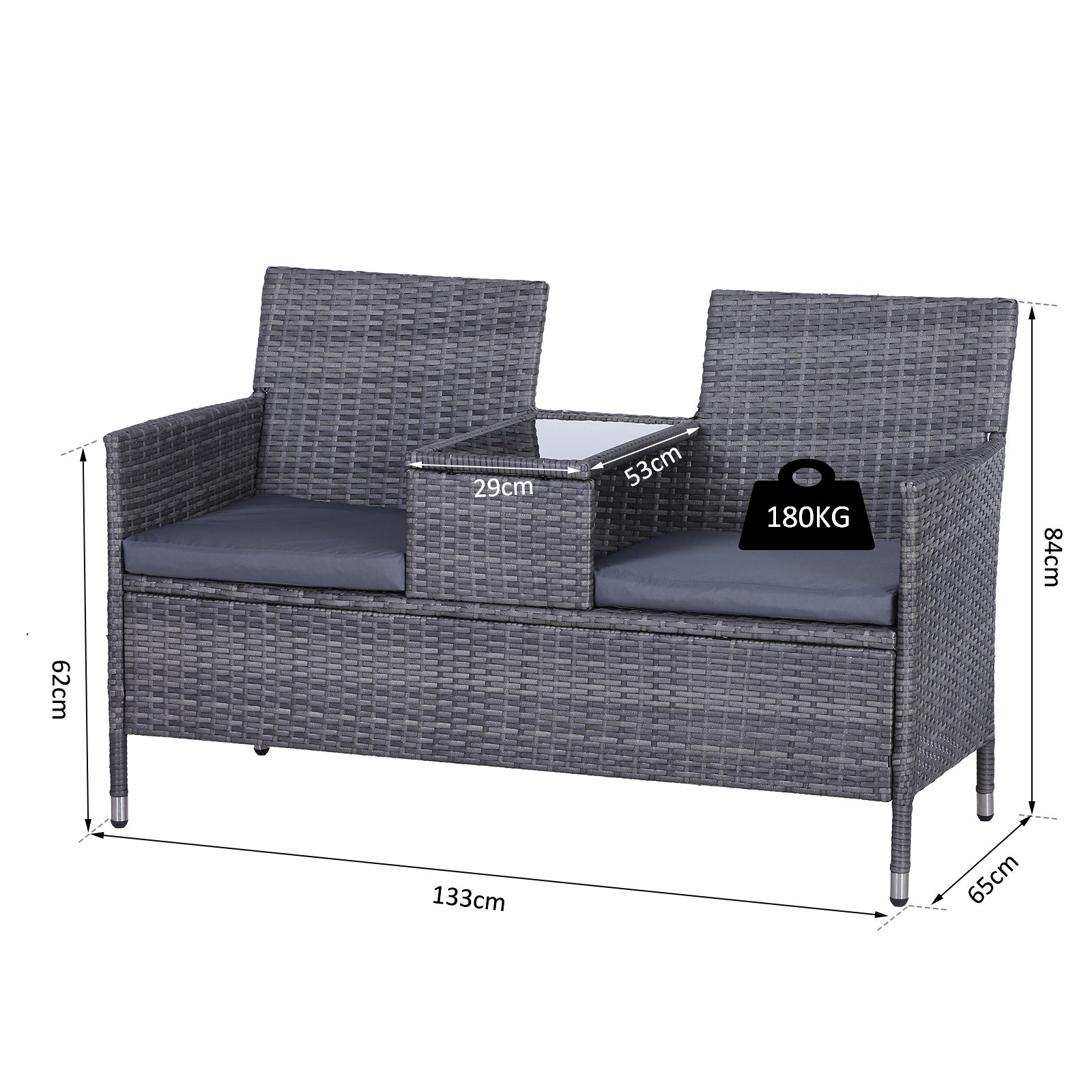 MCL 2-Seater PE Rattan Outdoor Garden Bench w/ Centre Table Grey
