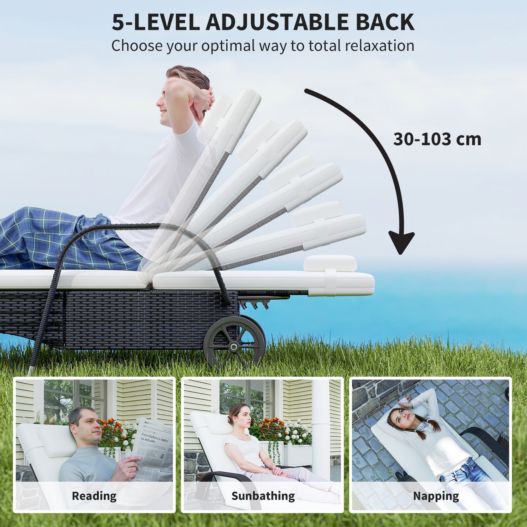- Lounge sofa height is adjustable to 5 positions
