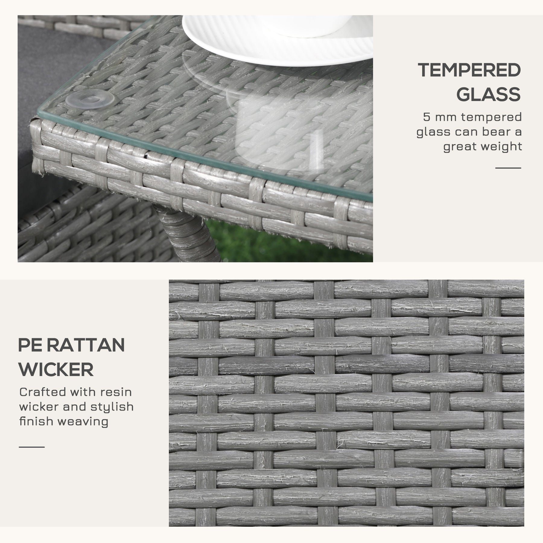 MCL 3 Pieces Rattan Bistro Set, Wicker Garden Furniture Set with 2-Tier Coffee Table and Chairs, Washable Cushions, for Outdoor Patio Balcony, Grey