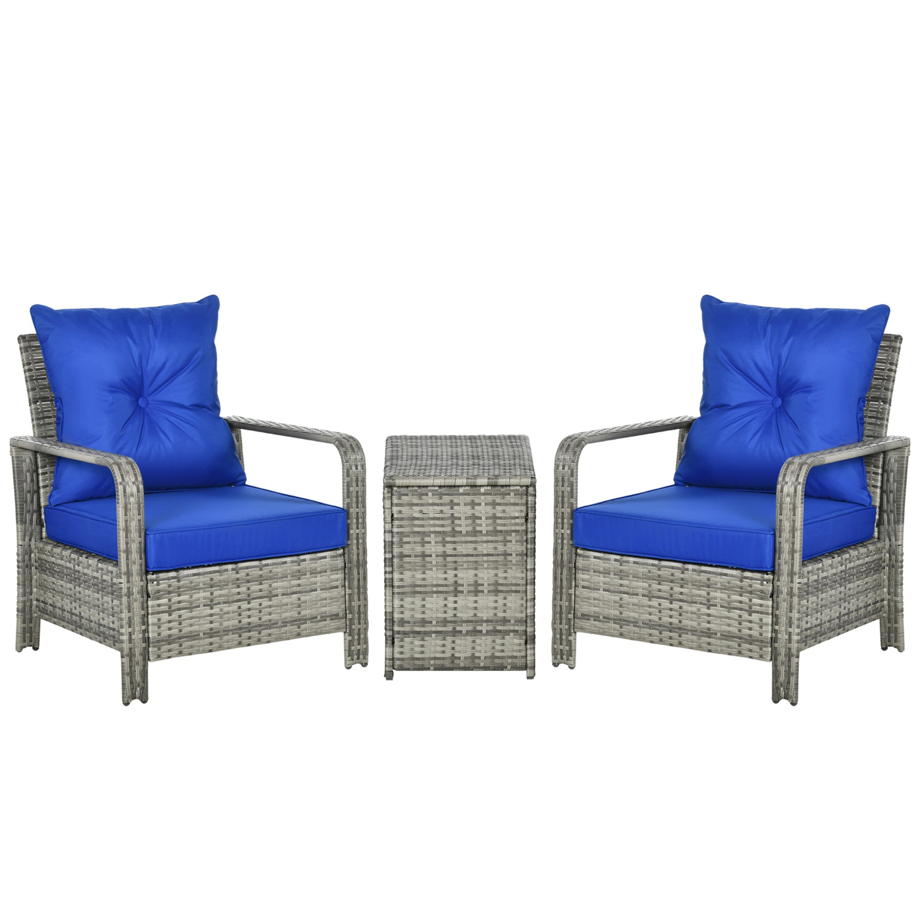 MCL 3 Pieces Rattan Bistro Set, Wicker Garden Furniture Set with Storage Coffee Table and Chairs, Thickened Cushions for Outdoor, Patio, Balcony, Blue