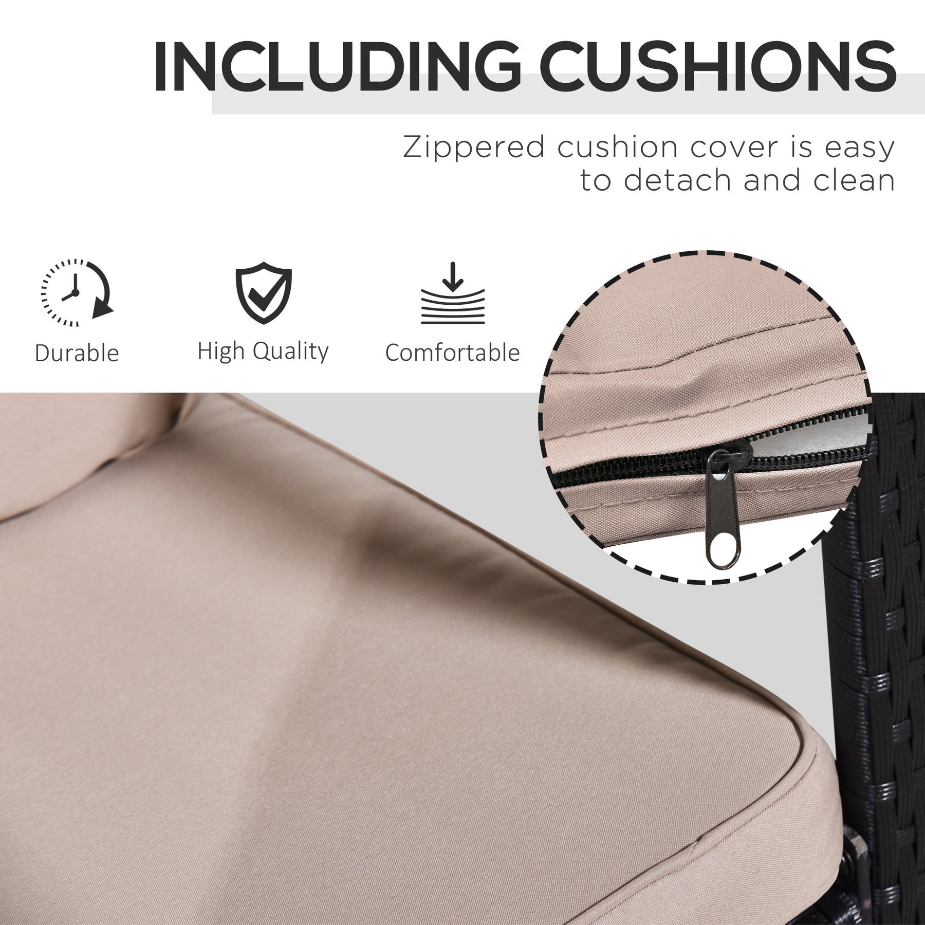 Rock the day away by yourself or with a friend with this three-piece set from MCL. Made from high quality PE wicker in a light grey finish, each piece is supported with a metal frame underneath for extra strength and stability. Each seat features two plush padded cushions and a high rise back for all day comfort. The set is completed with a matching side table which showcases a thick tempered glass top, ensuring it’s easy to clean whist adding a stylish finishing touch. Perfect for catching some well-deserved sun rays.