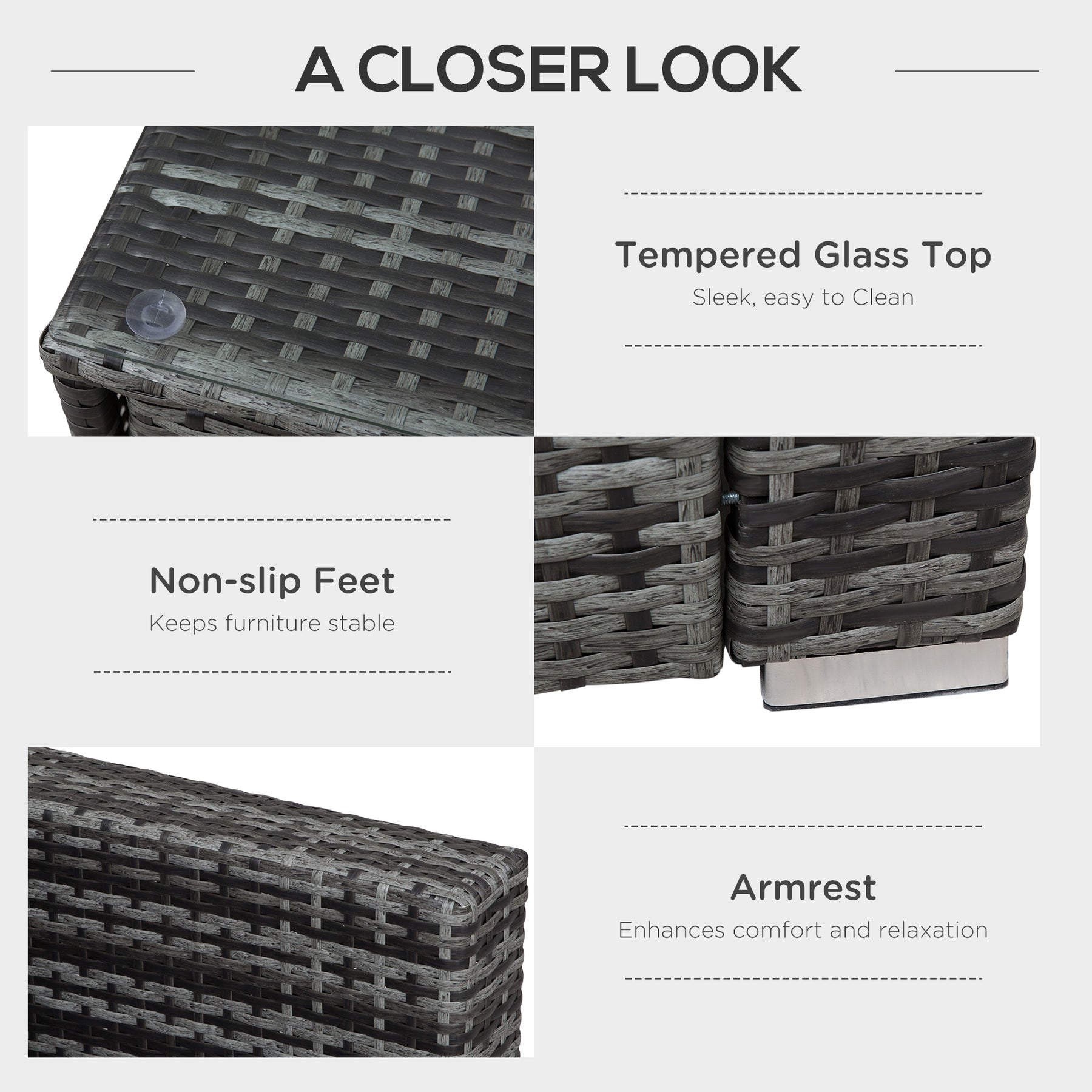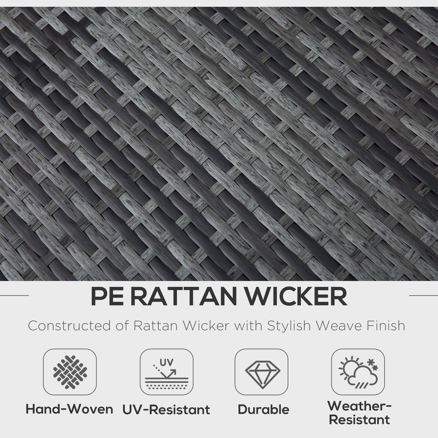 • Powder coated metal frame for sturdy, with PE wicker wrapped around for a stylish rattan design which is resistant to light weathering