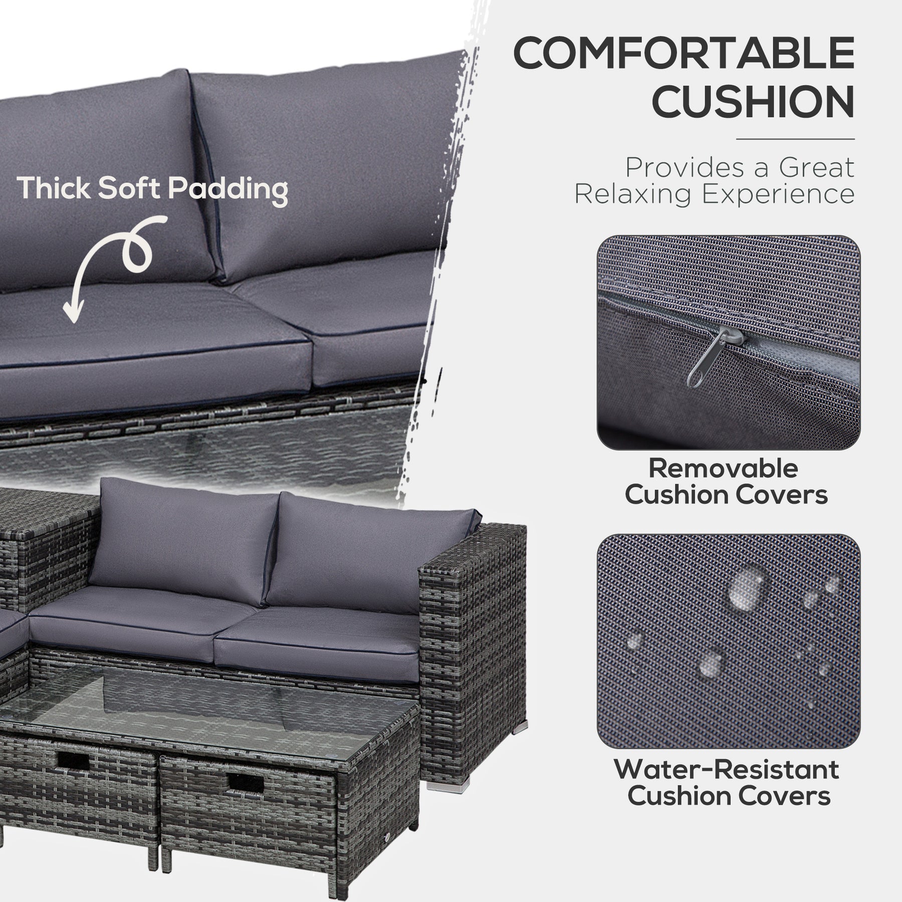 • Plush seat and back cushions on the sofas for unrivalled comfort, with removable and washable covers so you can keep them clean easily