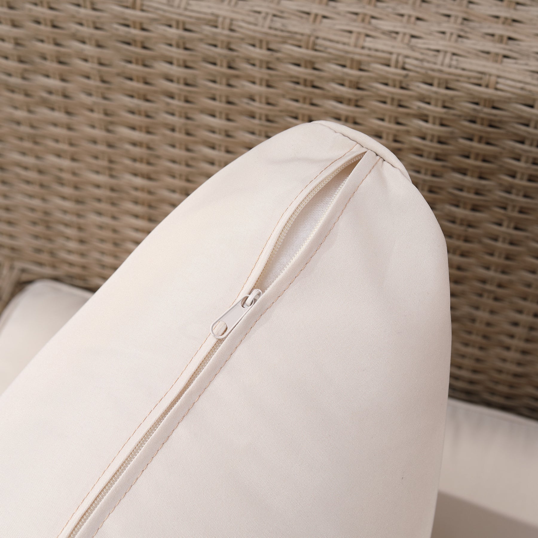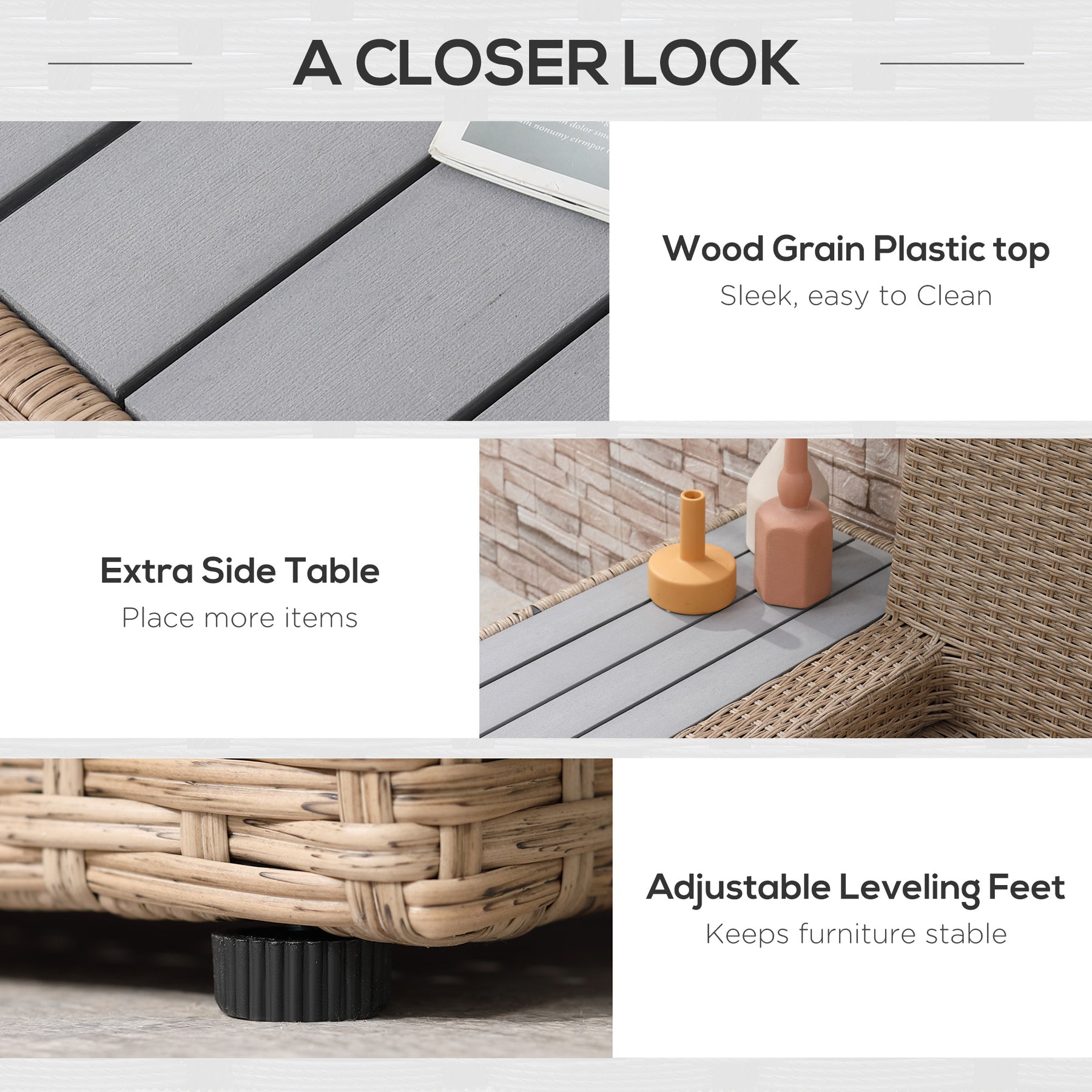 MCL 4 Pieces Rattan Garden Furniture Set, Garden Corner Sofa with Side Trays, Wicker Conservatory Furniture Set with Loveseats, Slatted Plastic Top Coffee Table and Cushions, Beige