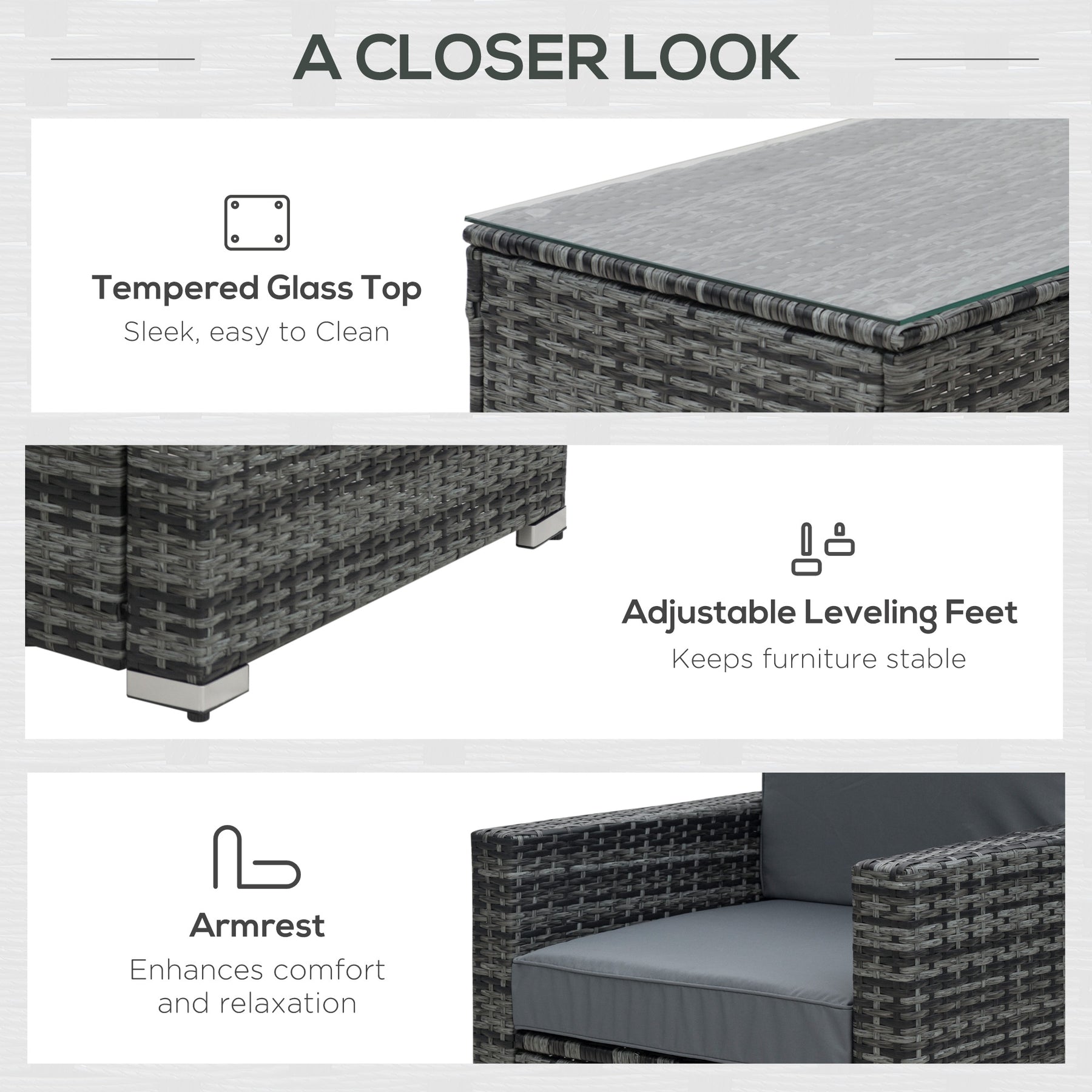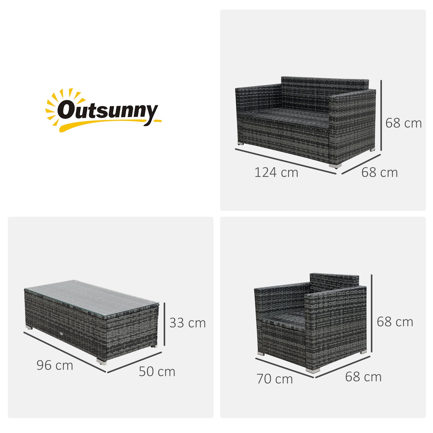 Boring patio? Brighten your backyard with MCL's 4-Piece Cushioned Outdoor Rattan Wicker Sofa Sectional Patio Furniture Set and make the outside of your home just as inviting as the inside. Oftentimes, due to uncomfortable seating or simply a lack of furniture, many outdoor environments go underused or ignored completely. MCL believes that you can change all that with a simple, budget-friendly investment in one of our designer outdoor furniture sets.
