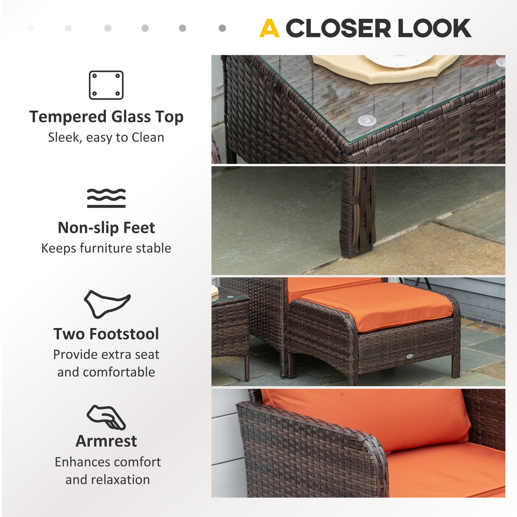 • Two footstools include you can relax your feet, or use it as an extra seat