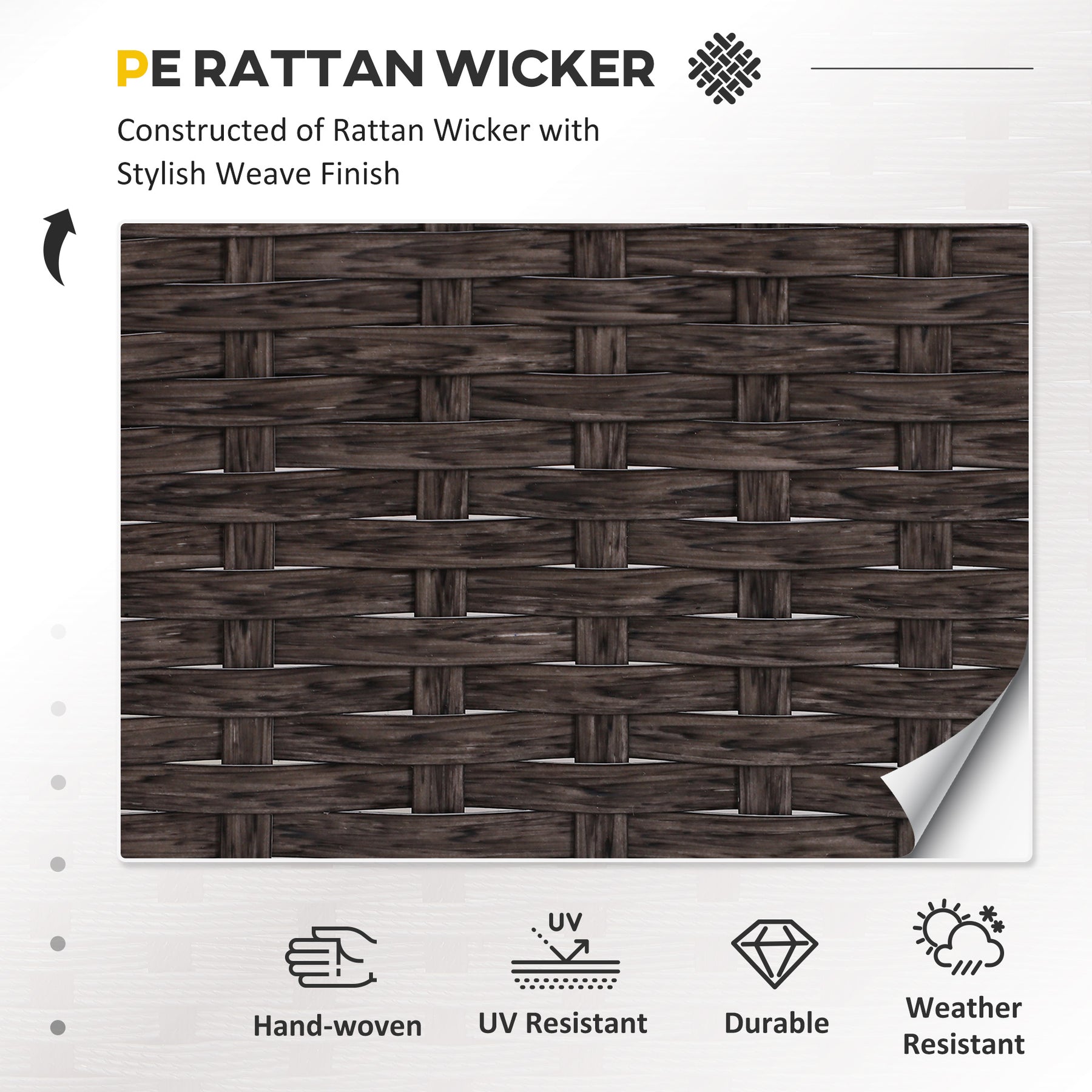 • All hand woven PE rattan base with a steel frame for reinforced strength