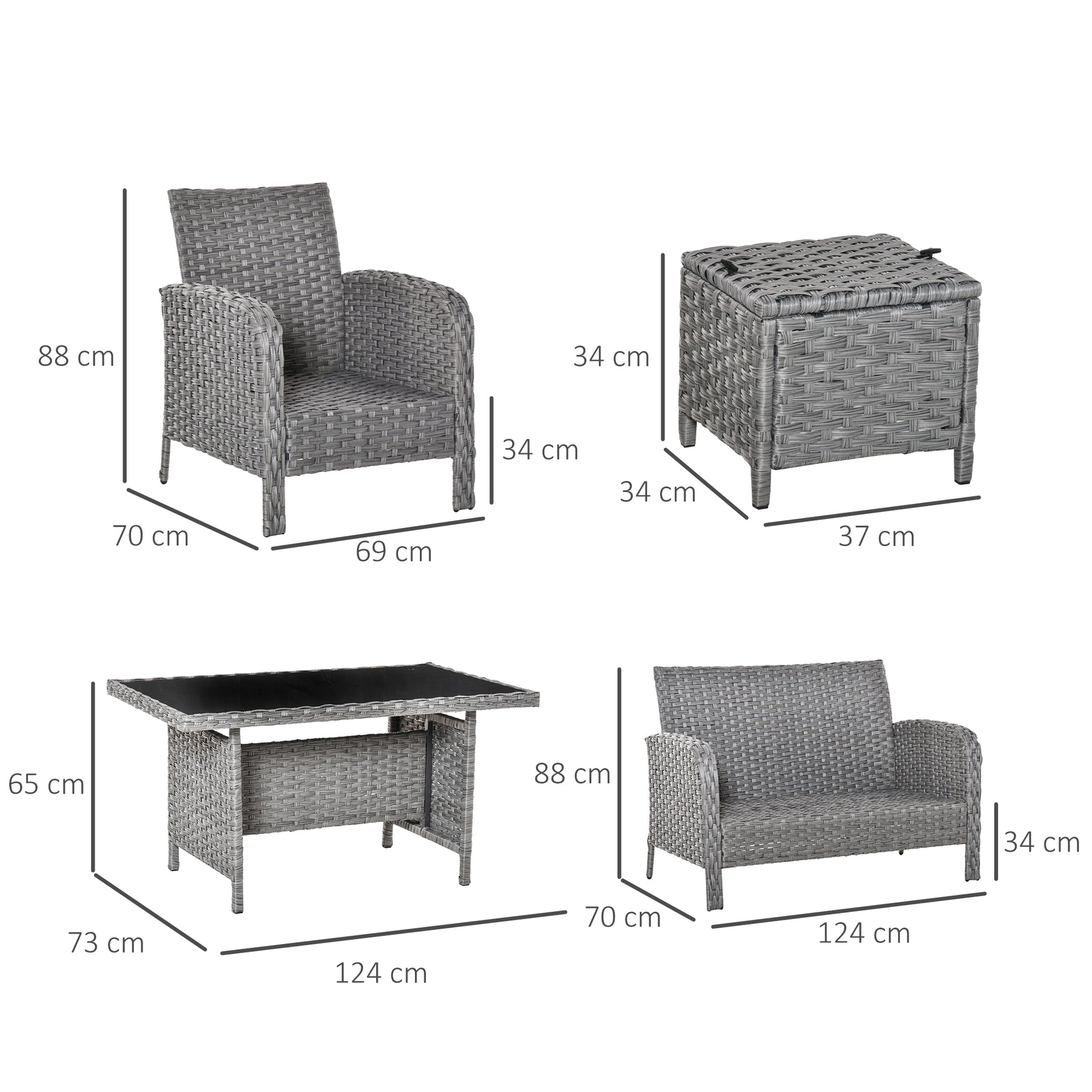• Material: Metal, PE Rattan, Polyester