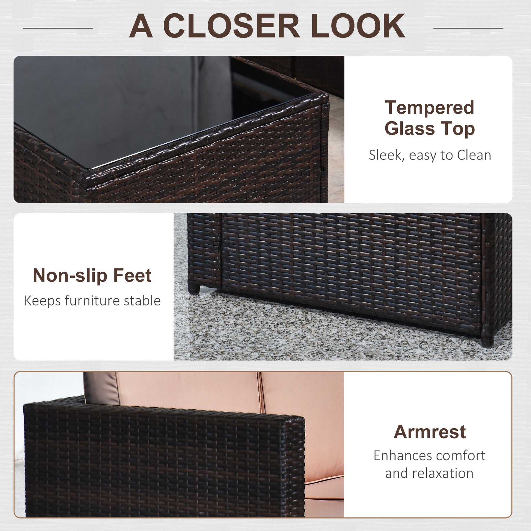 MCL 6-Seater Rattan Sofa Furniture Set W/Cushions, Steel Frame-Brown