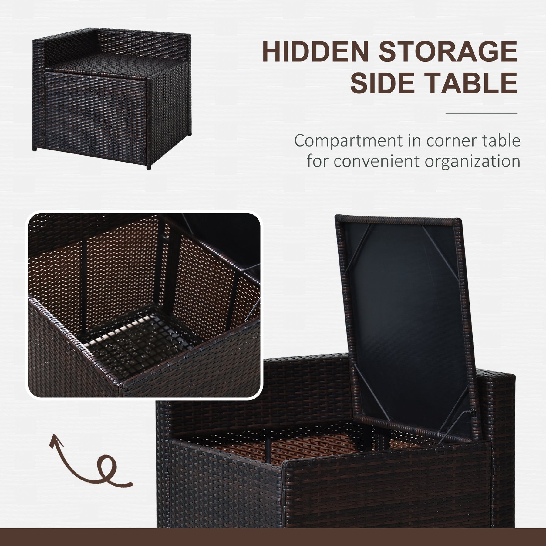 • Features:-Stylish garden rattan furniture set consisting of four seats, two corner seats, a corner table and a coffee table with a sleek tempered glass top