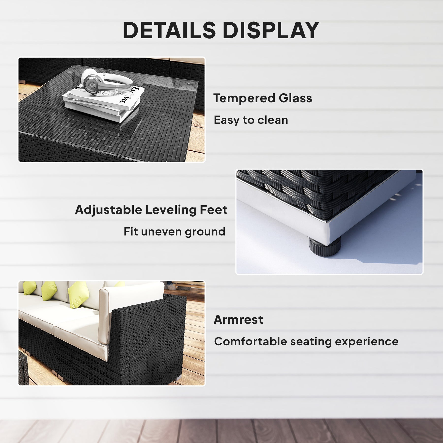 MCL 8 Piece Rattan Corner Sofa Set with Wide & Deep Seat, Assembled Aluminium PE Rattan Garden Furniture Set with Thick Cushions and Glass Top Table for Outdoor, Conservatory, Black
