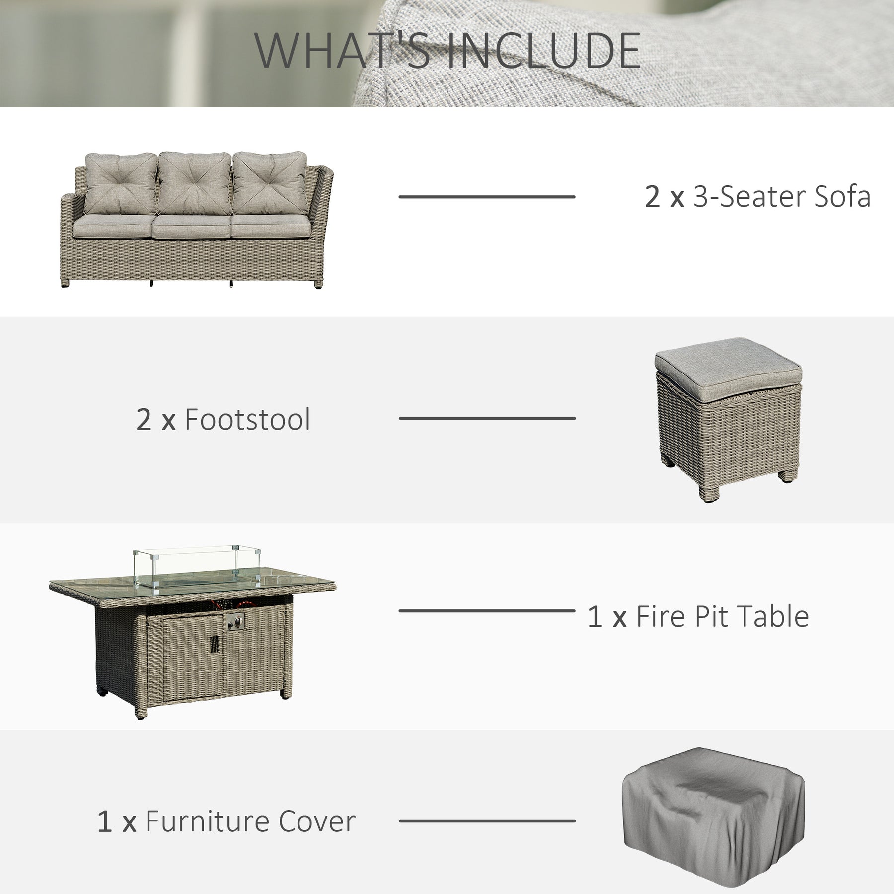 MCL 8-Seater Outdoor PE Rattan Sofa Set Conversation Set w/ Fire Pit Table, L-Shape Sofa, Footstool and Furniture Cover