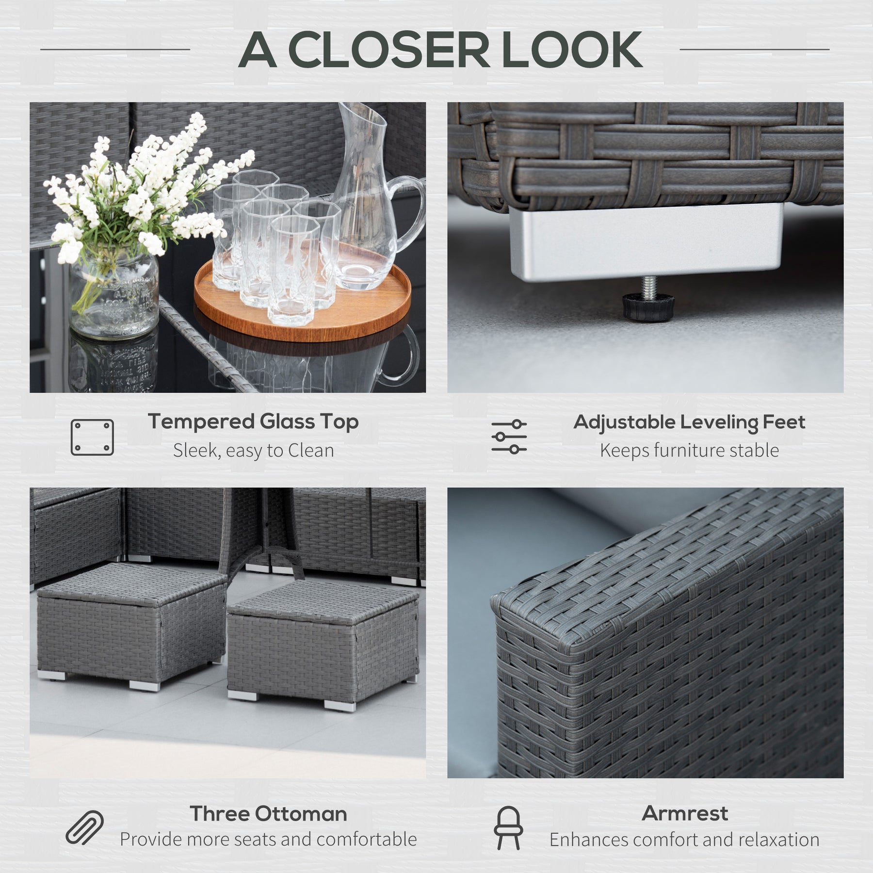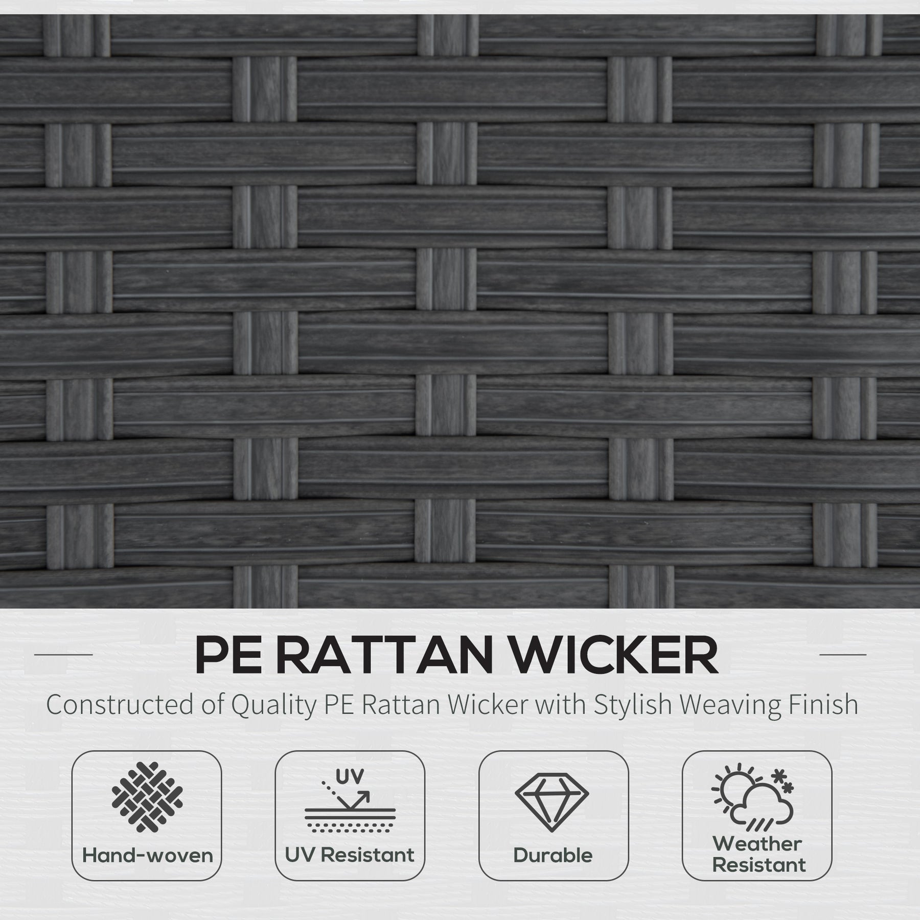- Material: Steel frame, PE rattan, Polyester