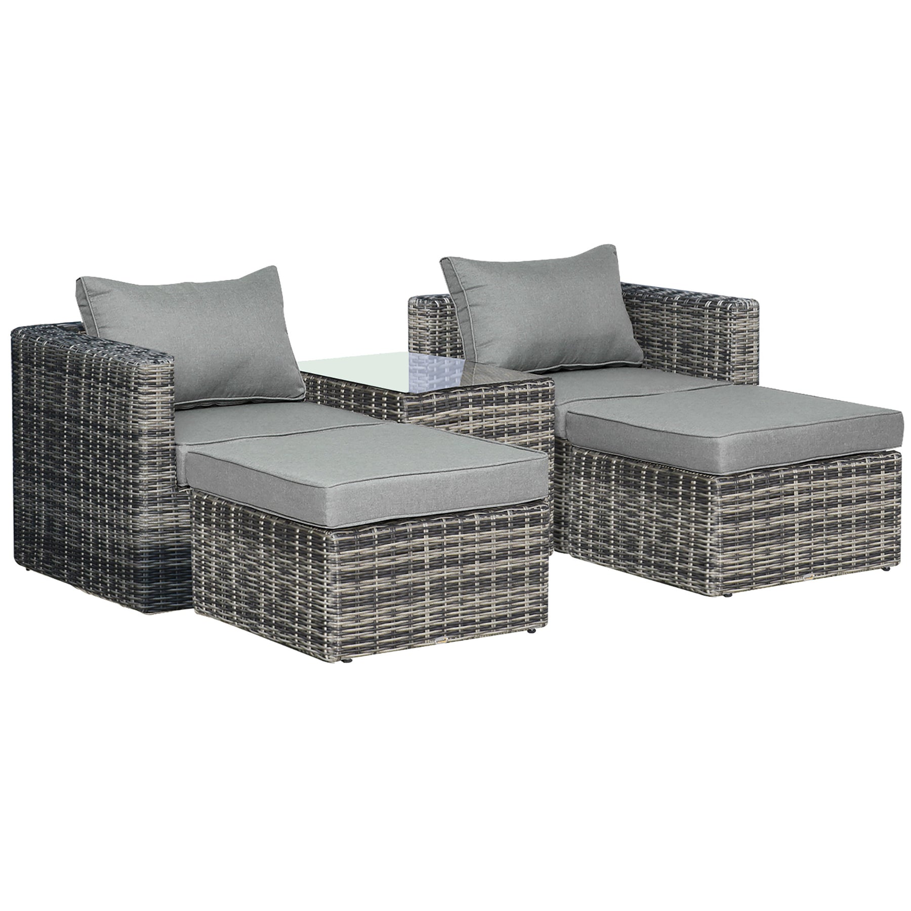 - Five-piece set formed of two outdoor armchairs, two footstools and a matching coffee table
