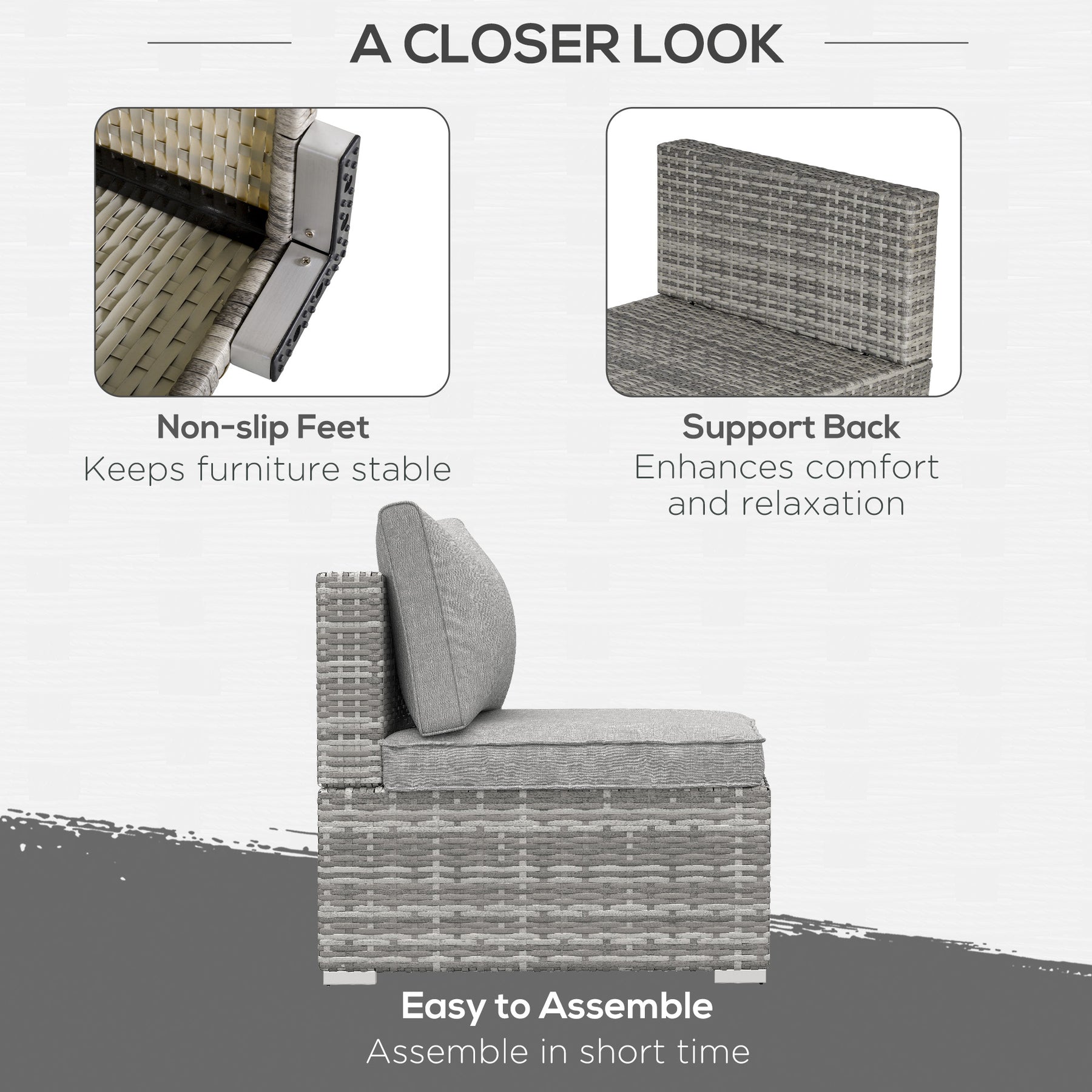 MCL Outdoor PE Rattan Furniture with Cushions, Garden Armless Chair with Adjustable Footpads and Back Support Cushion, for Garden, Yard, Terrace, Light Grey