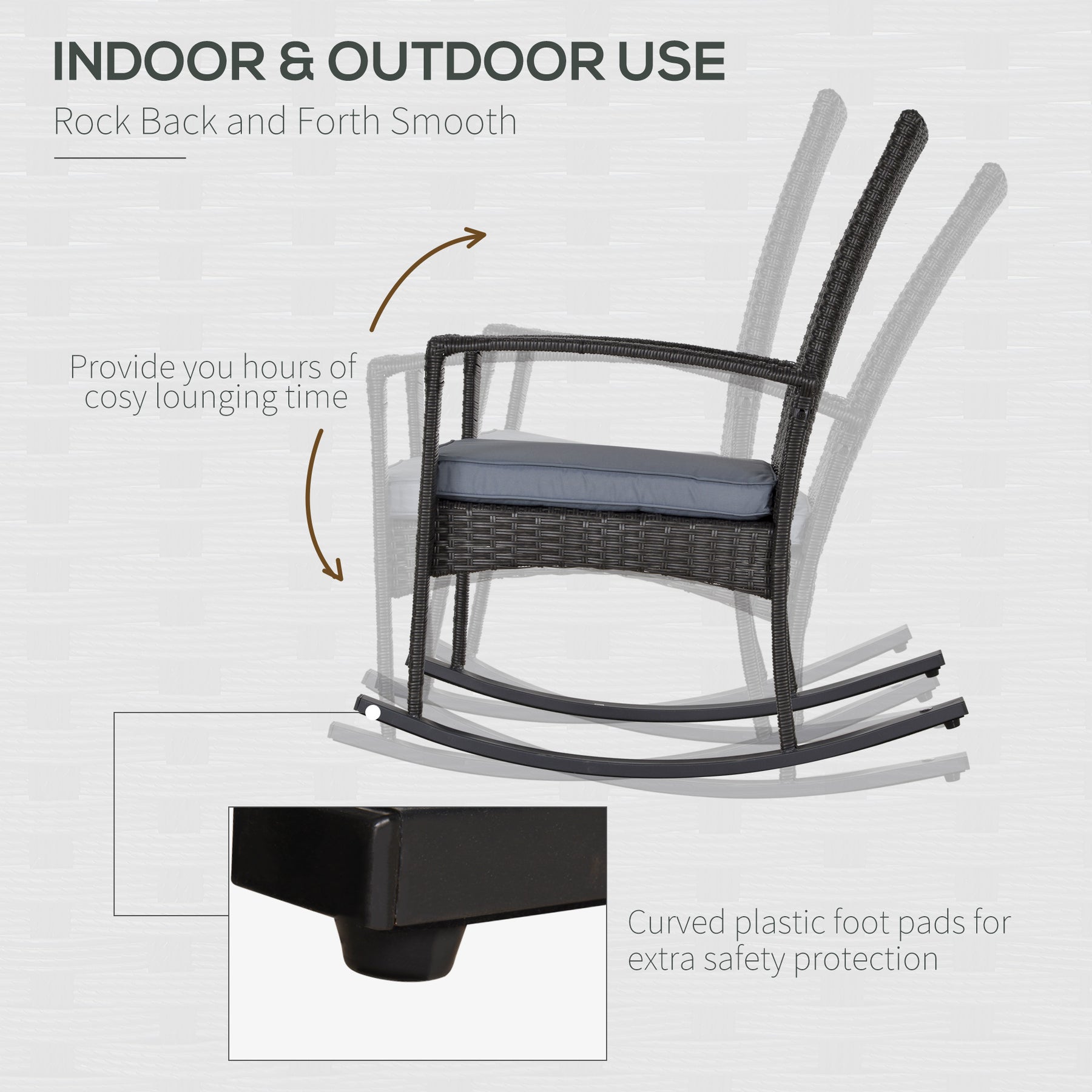 - Material: PE rattan, Polyester fabric, Steel frame