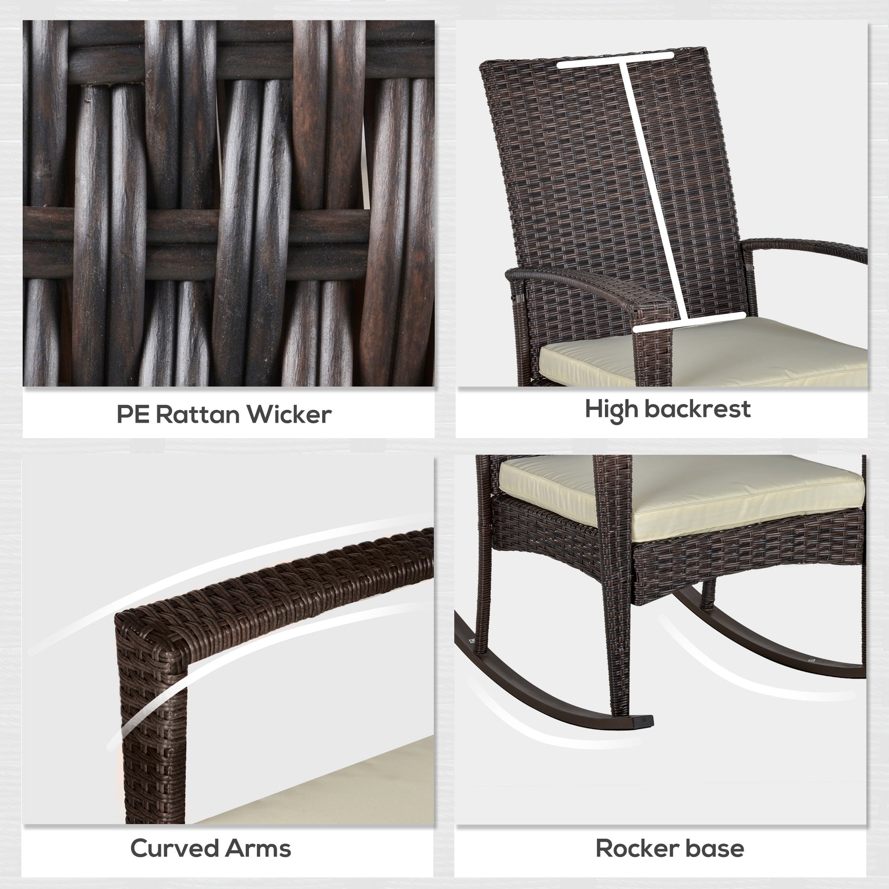 MCL PE Rattan Garden Rocking Chair, Outdoor Rocking with Cushion, 160 KG Capacity Wicker Garden Armchair Rocker with Metal Frame for Patio, Porch, Balcony, Brown